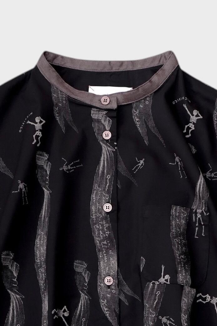 〈 michirico 25SS 〉 My dear Mexico TEX collarless shirts "シャツ" / ブラック / L (115-130)〜XXL (140-150)
