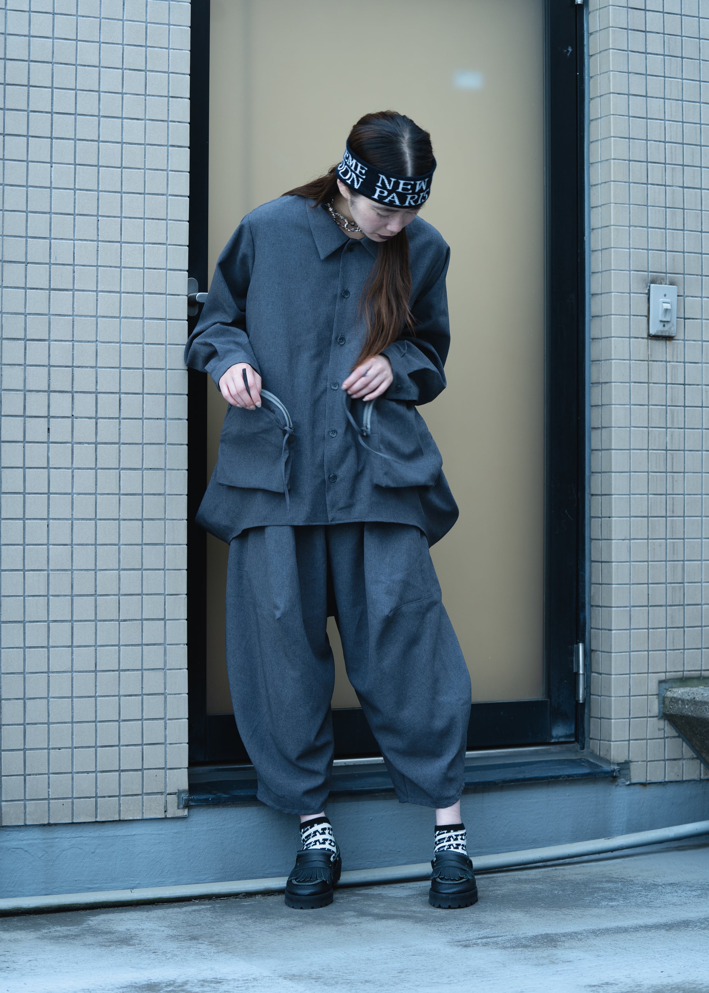 セットアップで着てほしくて、同生地でポインテッドパンツも作りました!