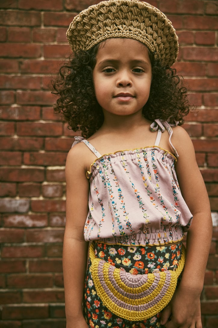 ボタニカルな柄にパイピングカラーがアクセントの夏向けのトップス。 同柄でベビーアイテムややシュシュなど家族でお揃いも。