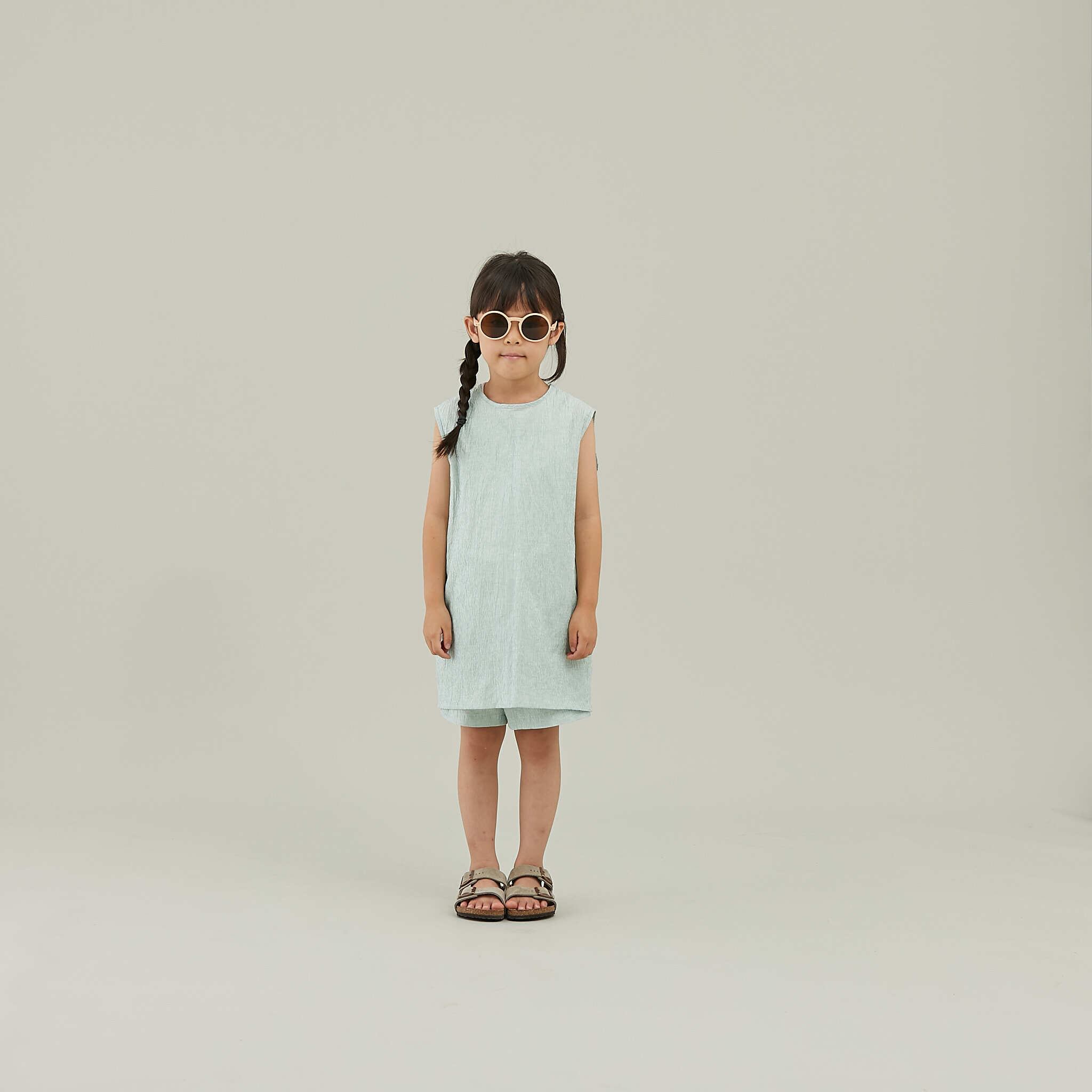〈 MOUN TEN. 25SS 〉 linen blend nosleeve tunic "チュニック" / green stripe