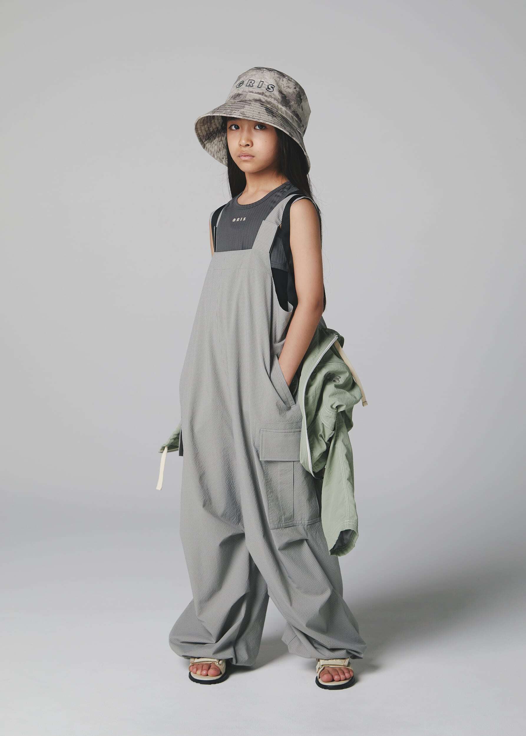 GRIS(グリ)は、フランス語で"くすんだ""グレー"を意味する言葉。2017年にUNIVERSAL DRAFTINGの井上氏が、「自分が気に入る子供服を作る」という想いからスタートしたブランドです。年齢、アイテム、性別の枠を超えたボーダーレスなデザインが特徴。ファッションだけでなく、建築やアートとも共鳴する洋服作りを目指しています。