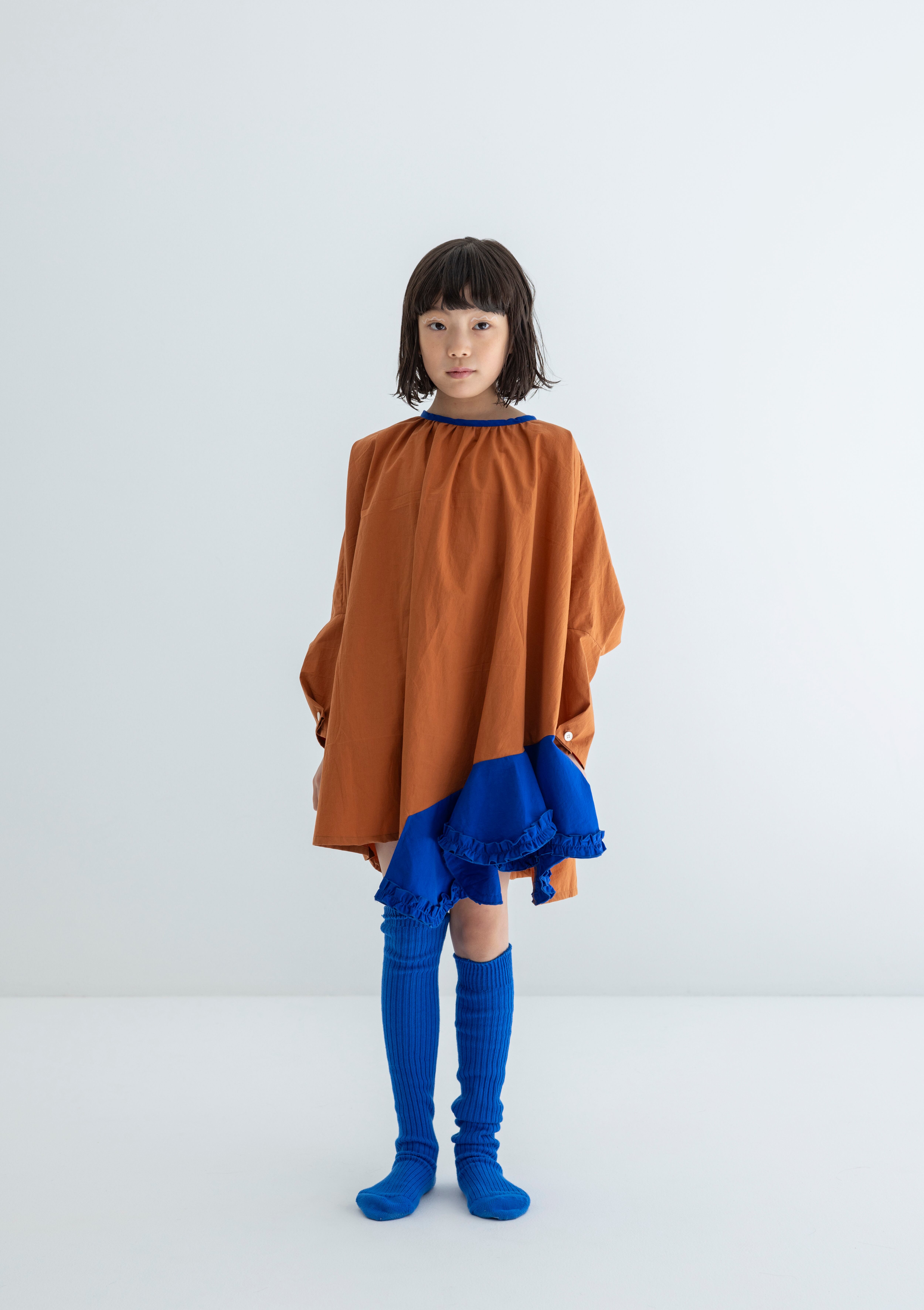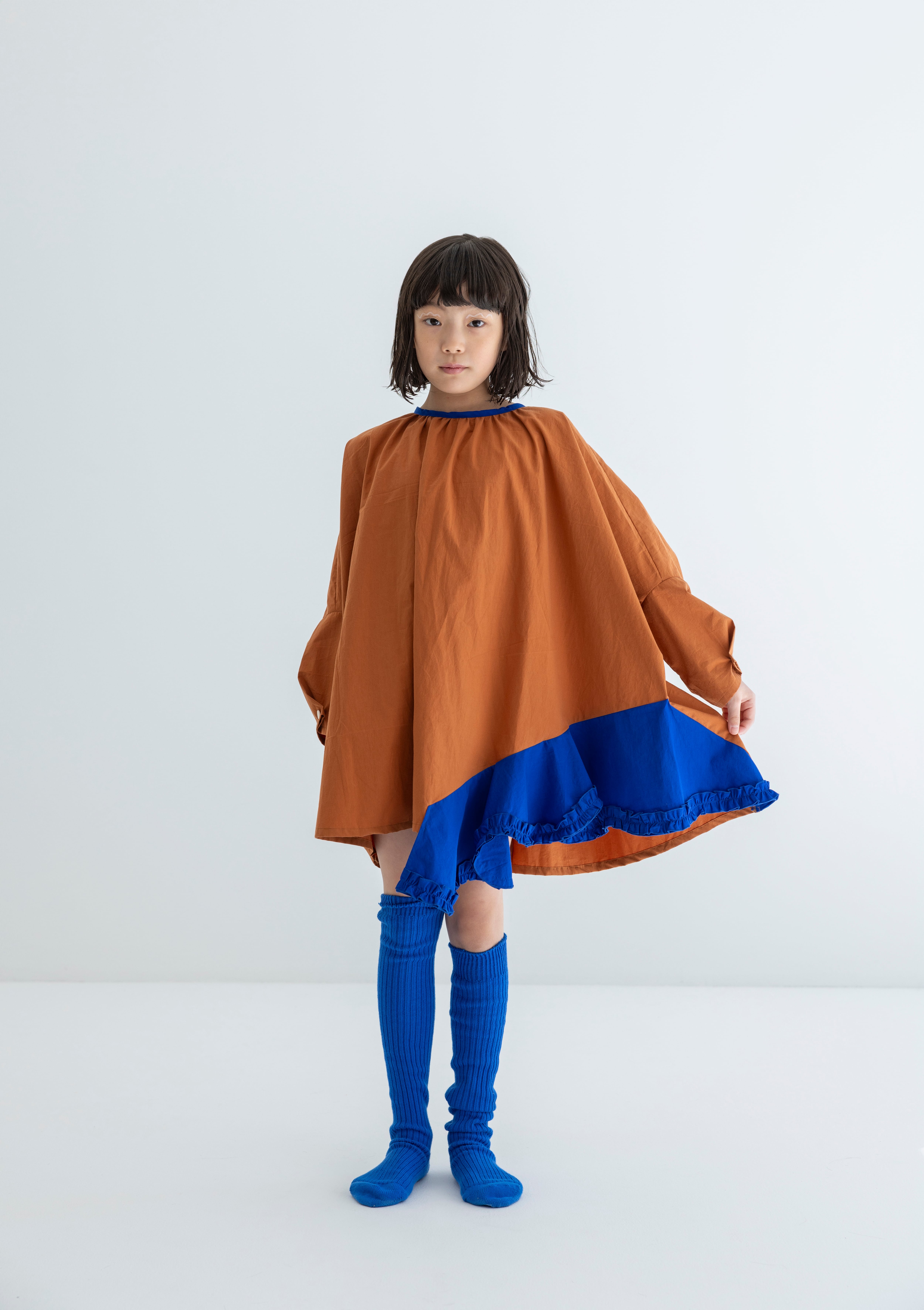 〈 folk made 25AW 〉 Flare wide dress / F25AW-020 / S-L / BROWN×BLUE