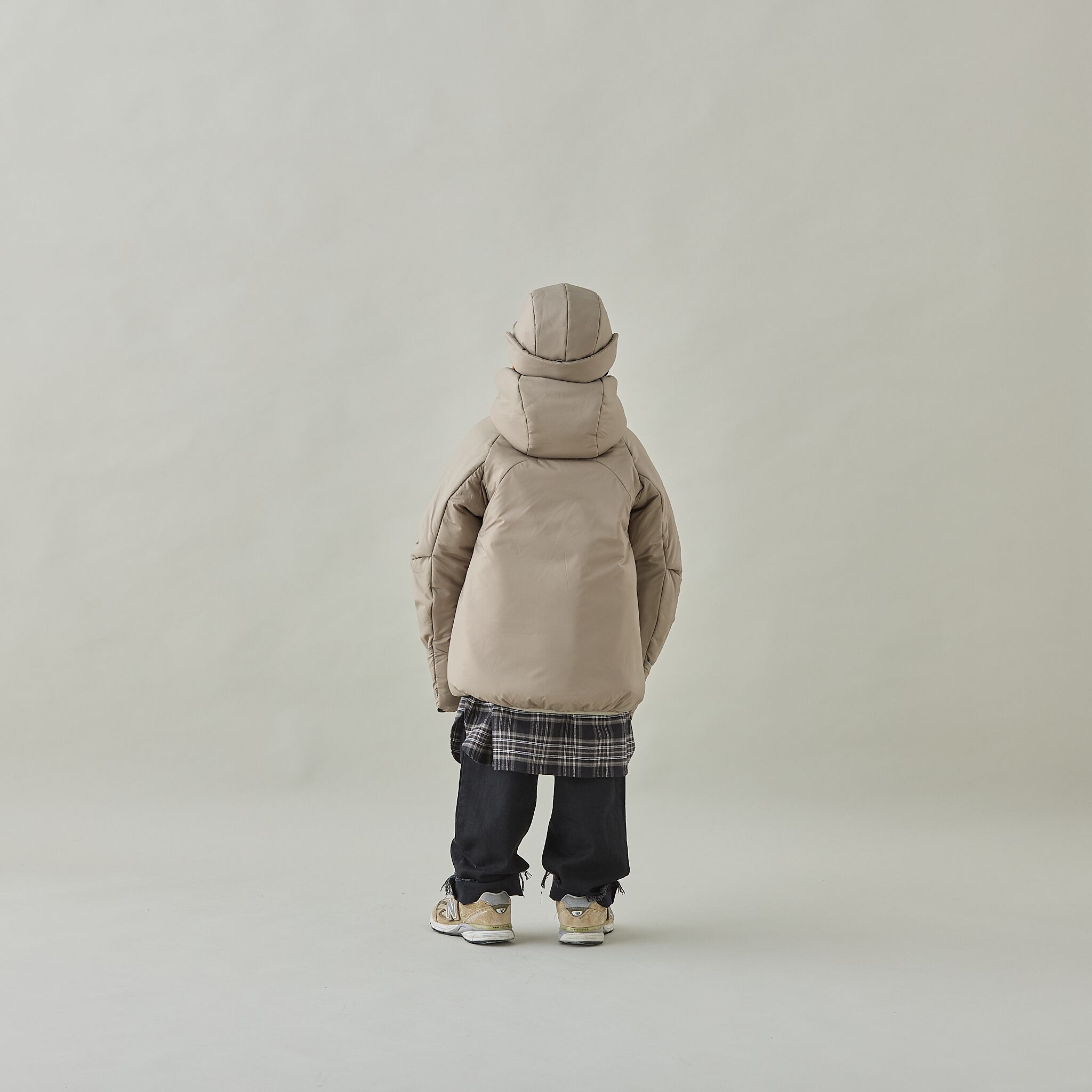 コロンとしたシルエットで、スッキリとしたややスポーティーなデザインは動きやすく、高めのフードや絞られた裾、ミトンの仕様で暖かさを逃がしません。