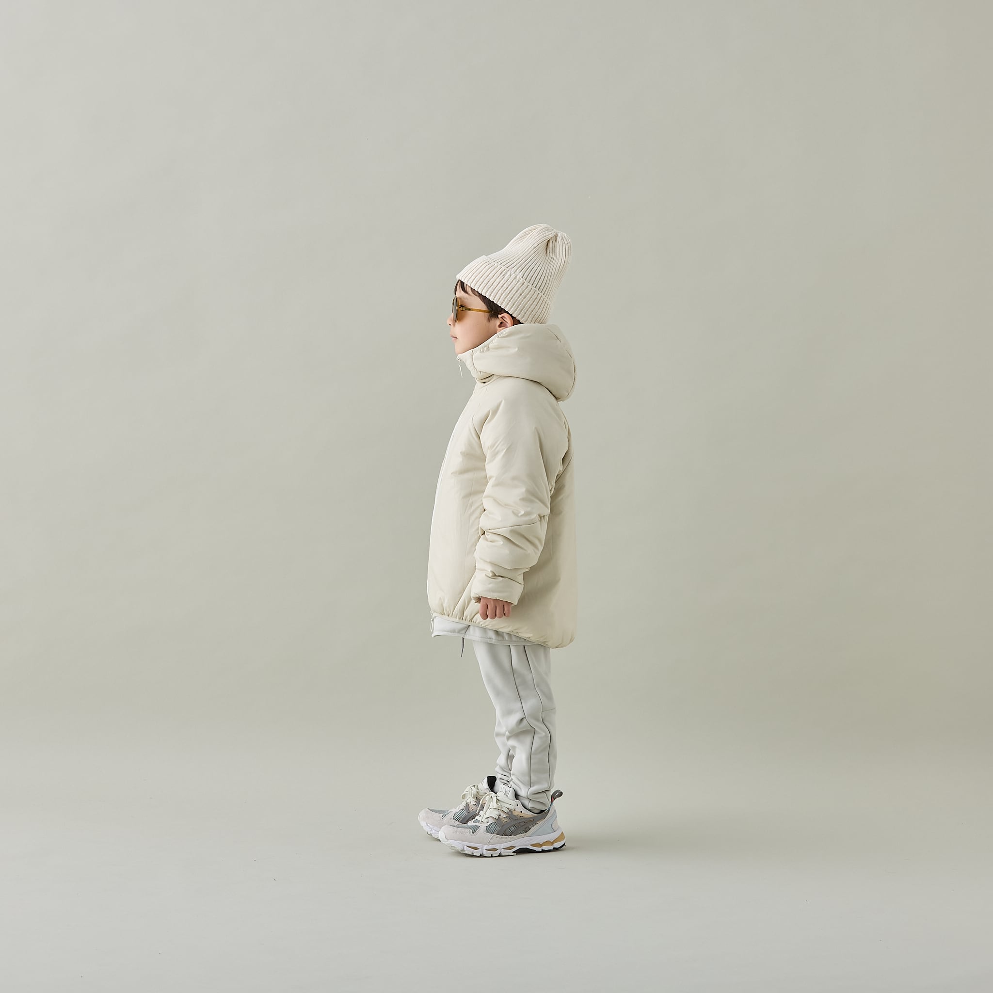 コロンとしたシルエットで、スッキリとしたややスポーティーなデザインは動きやすく、高めのフードや絞られた裾、ミトンの仕様で暖かさを逃がしません。