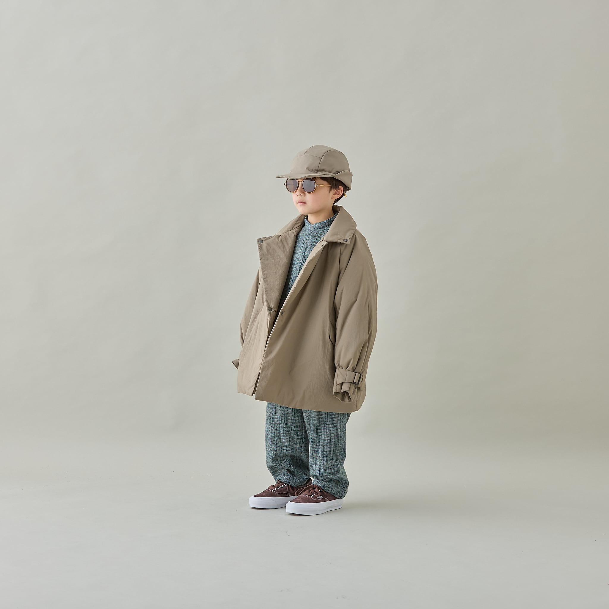 オーセンティックなダブル仕立てのハーフコートを、ゆったりとしたシルエットと軽量なナイロン素材の中綿入りにすることで、とても軽く暖かくフワッとしたボリューム感とリラックス感のあるスタイリッシュな雰囲気になっています。