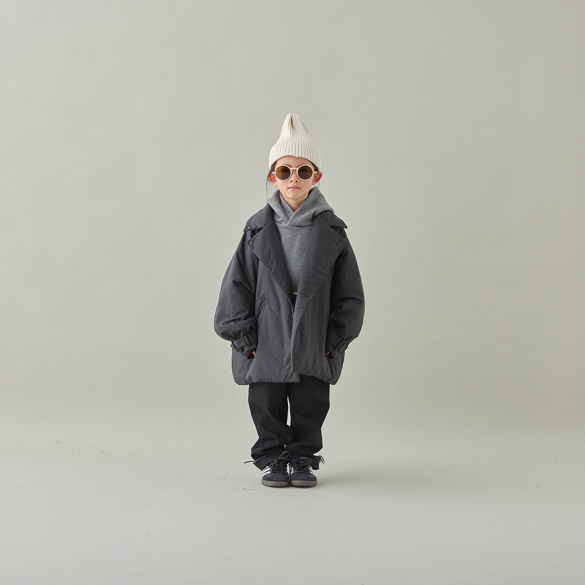 オーセンティックなダブル仕立てのハーフコートを、ゆったりとしたシルエットと軽量なナイロン素材の中綿入りにすることで、とても軽く暖かくフワッとしたボリューム感とリラックス感のあるスタイリッシュな雰囲気になっています。