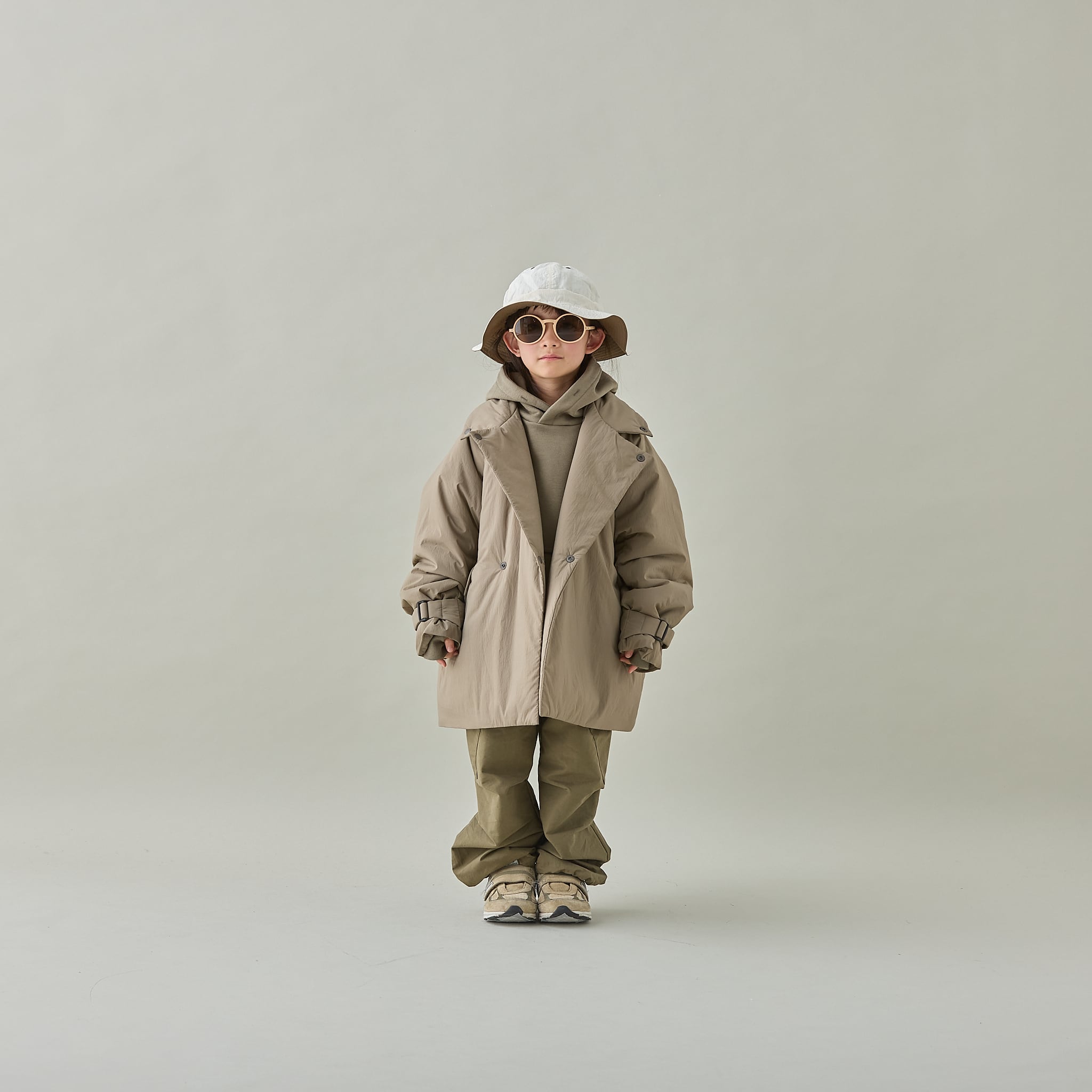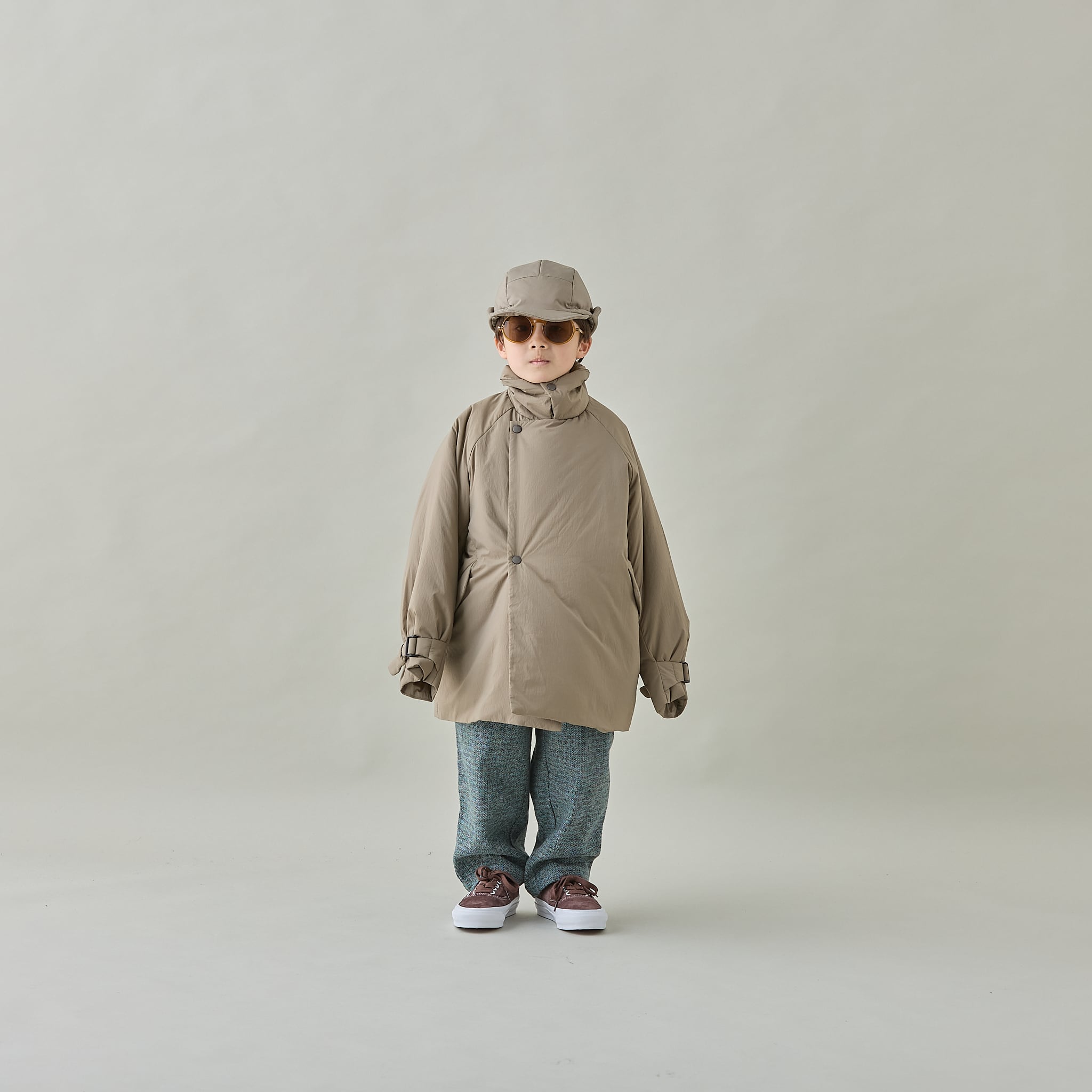 オーセンティックなダブル仕立てのハーフコートを、ゆったりとしたシルエットと軽量なナイロン素材の中綿入りにすることで、とても軽く暖かくフワッとしたボリューム感とリラックス感のあるスタイリッシュな雰囲気になっています。