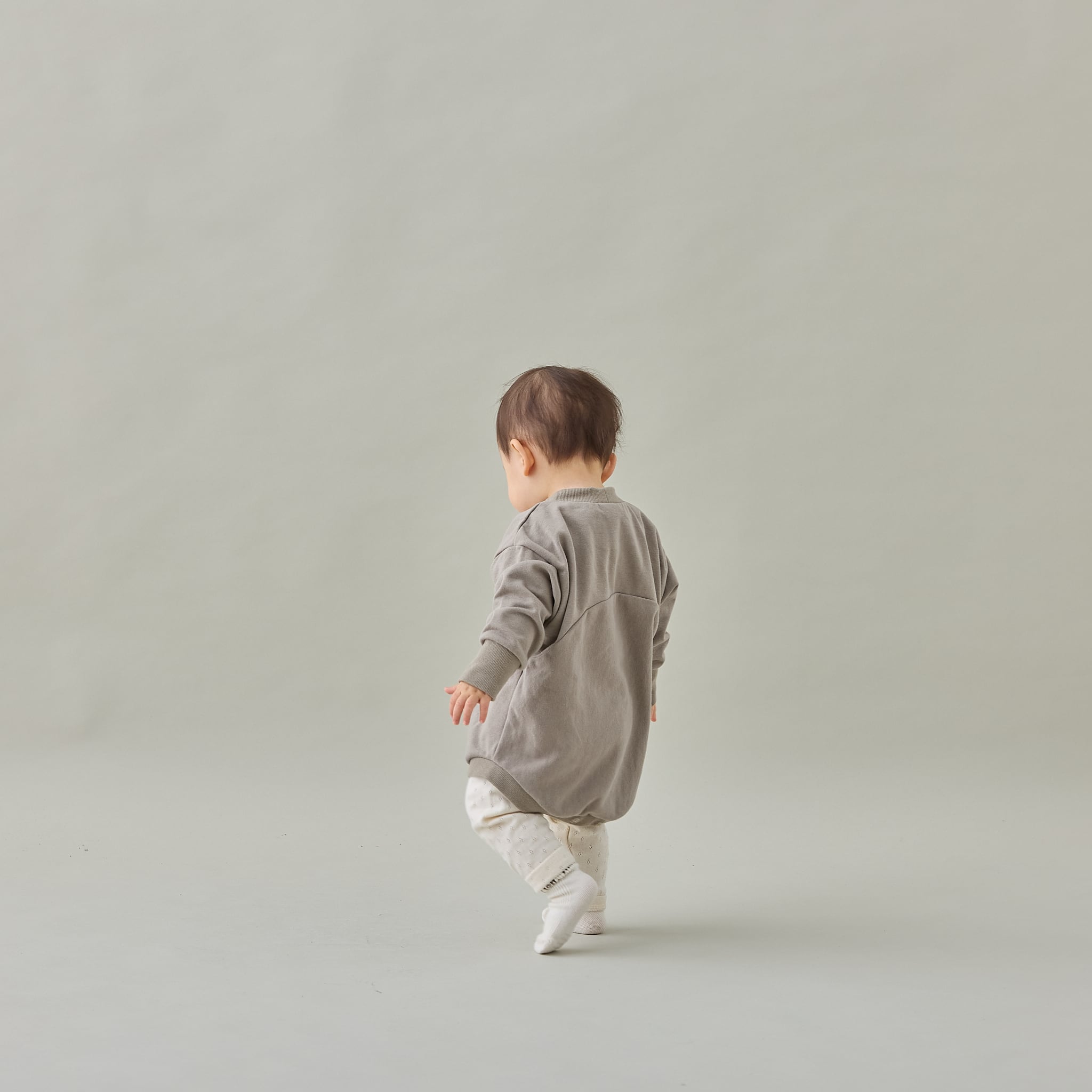 やや薄手のオーガニックコットン製のミニ裏毛に、小花柄の様な小さな穴(アイレット)がある、ナチュラルでかわいらしい雰囲気の素材を使用