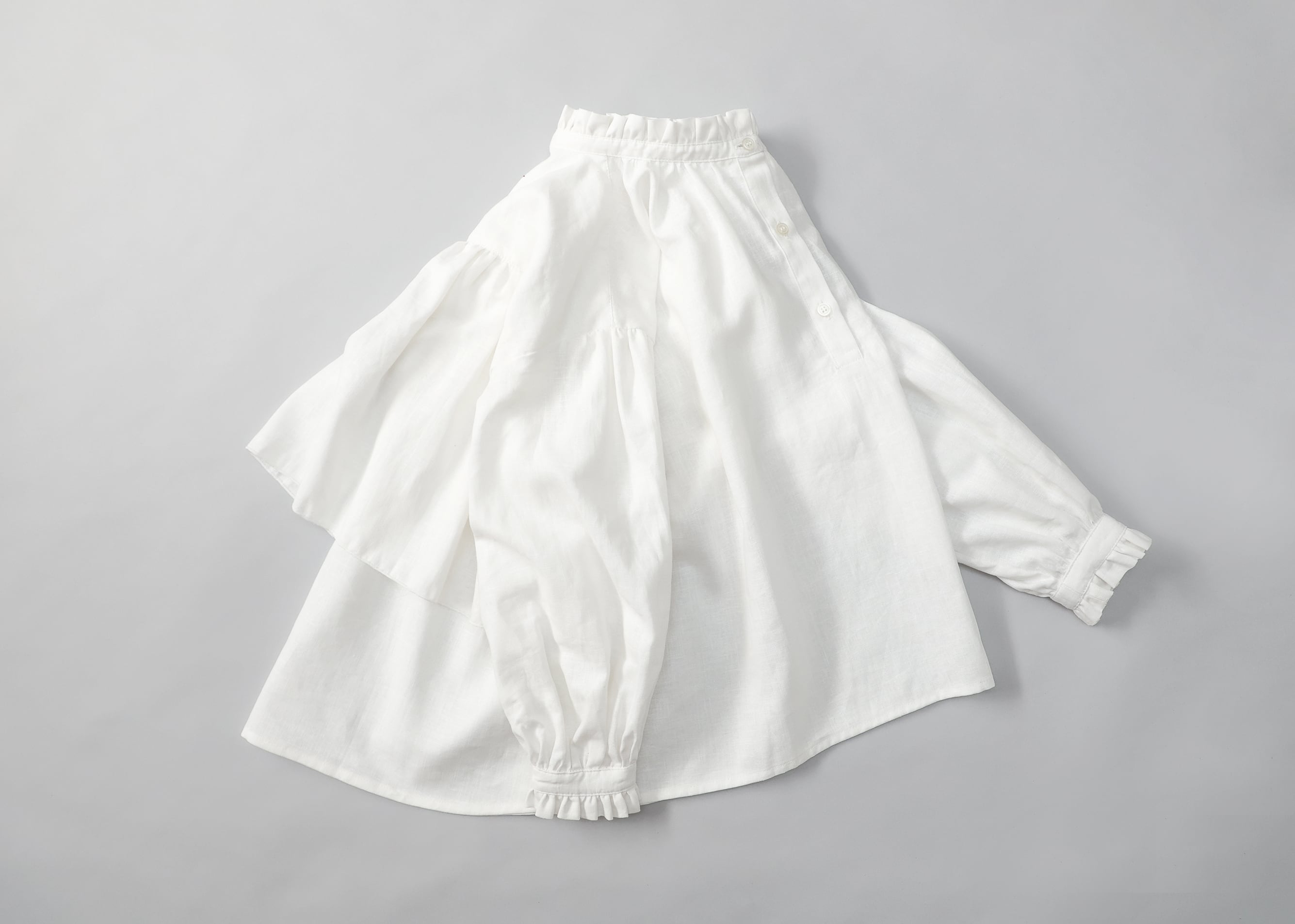 〈 michirico 25AW 〉 Ramie gather shirts / ・MR25AW-19 (kids) / ホワイト / L〜XXL
