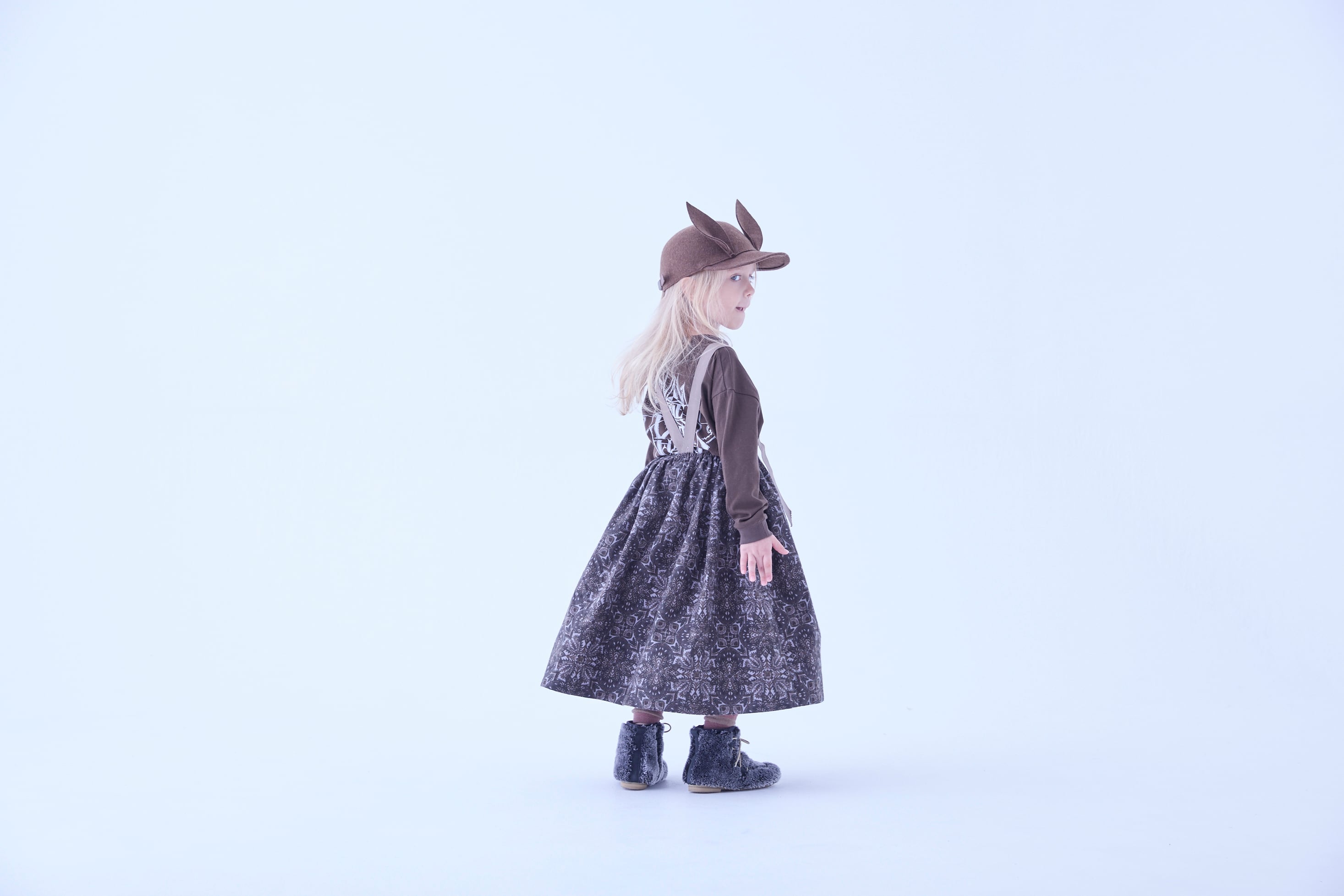 〈 eLfin Folk 25AW 〉Snow Crystal Printed Suspenders Skirt / dark brown