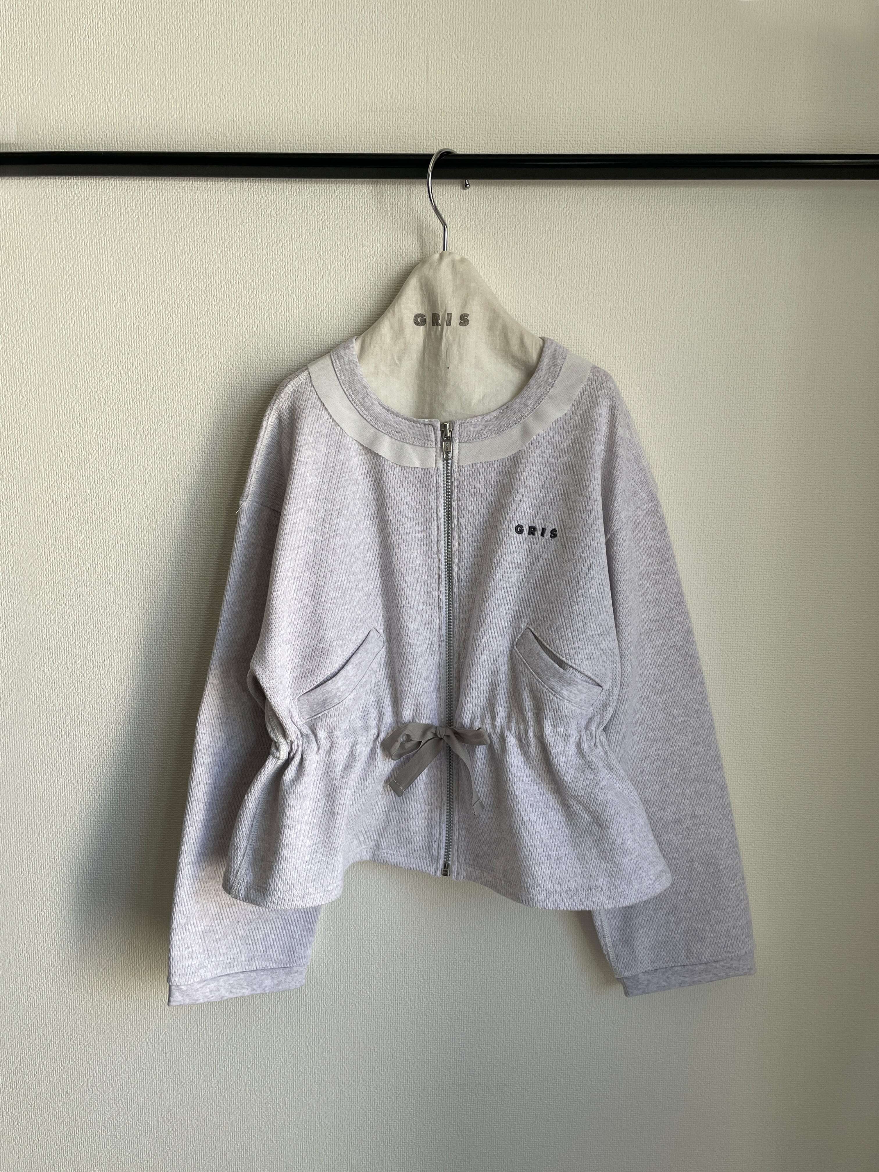 ややショート丈に設定されたジップアップの前開きデザインは、ウエストを自然に引き締めるラインを描き、ボトムとのバランスを美しく整えます。裾のシェイプを活かしてメリハリのあるスタイルにするのはもちろん、ゆったりとした着こなしでリラックス感を楽しむのもおすすめです。