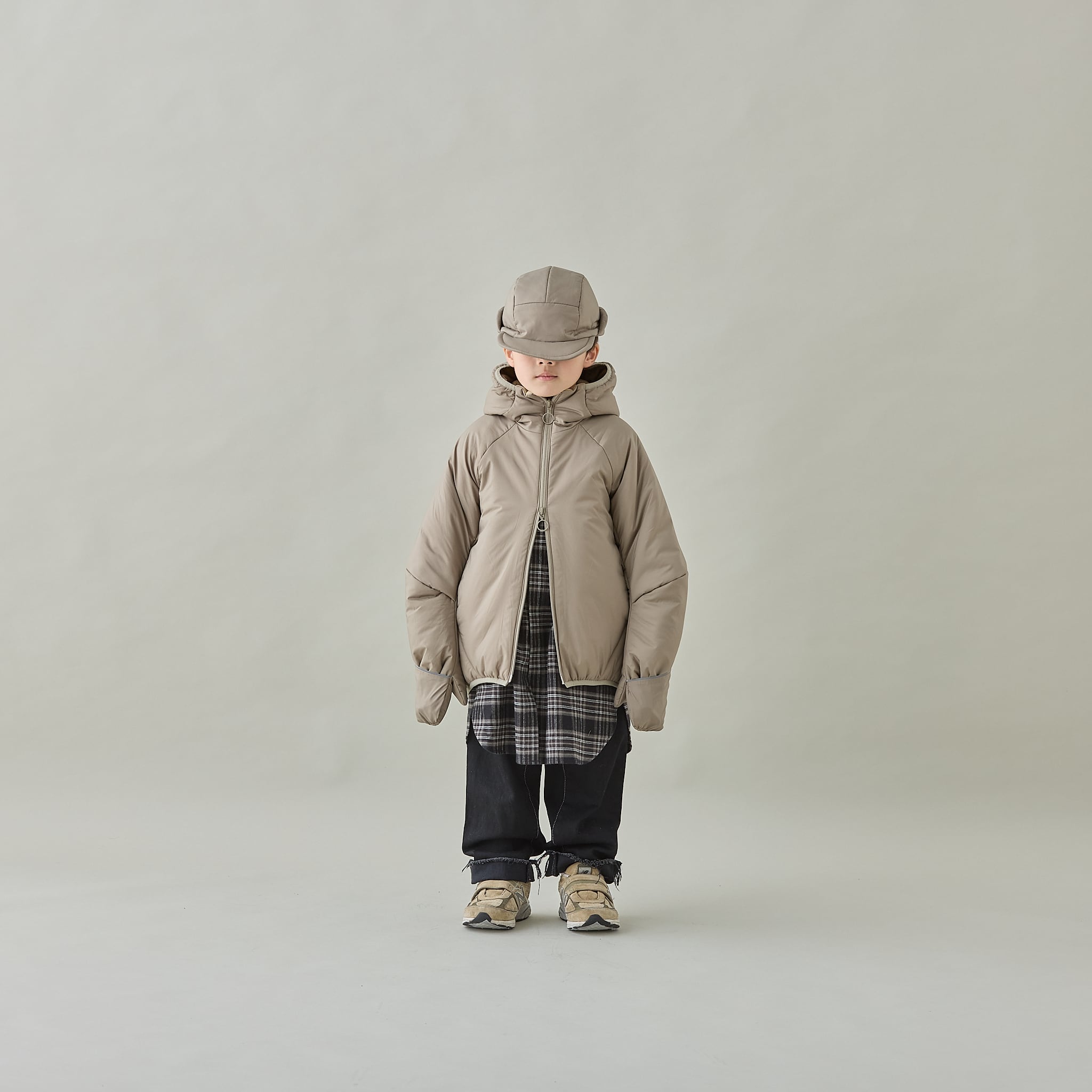 撥水性・防風性のある超軽量なリサイクルナイロン素材を使用し、保温性のある中綿入り、折り返せる耳当て付きで、とても軽く暖かいキャップです。