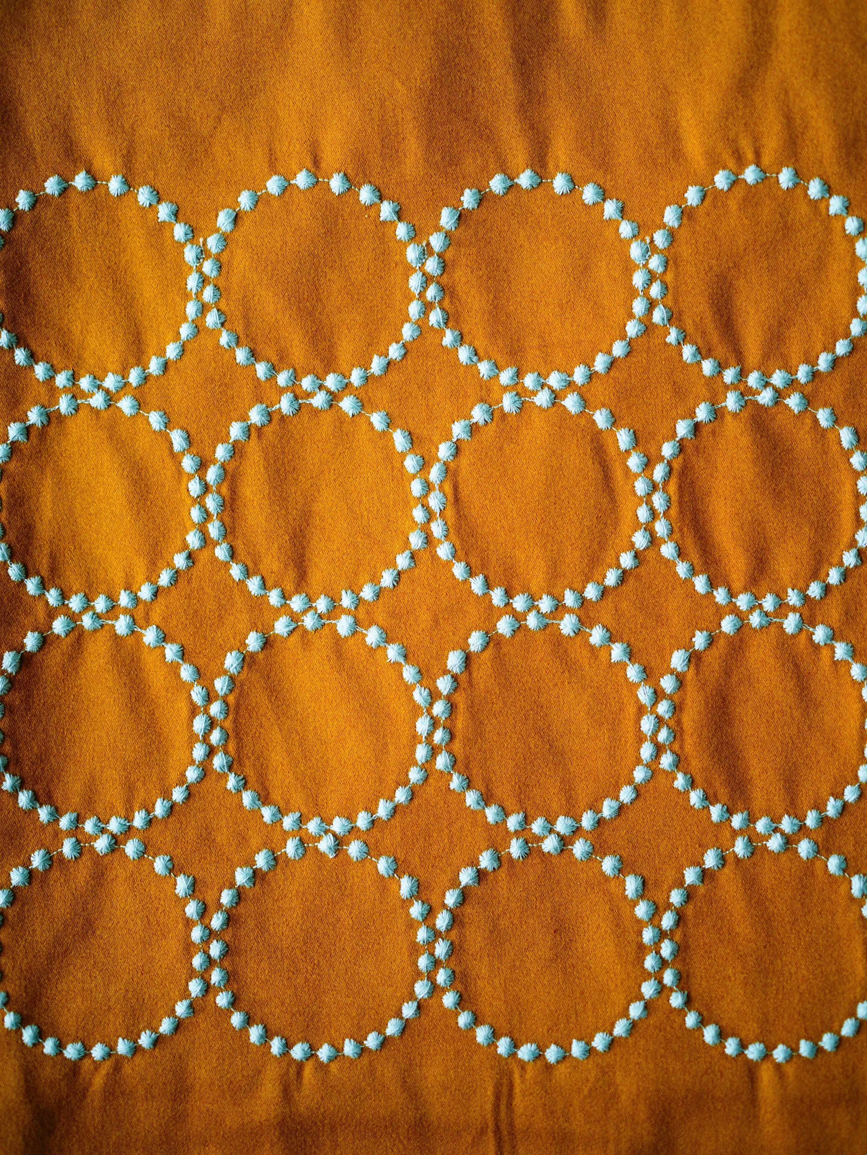手描きのような不揃いの粒が、ひとつひとつ異なるリズムを奏でるように並び、人の手のぬくもりや個性の美しさを映し出します。