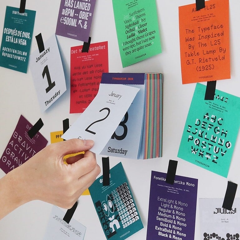 『Typodarium』は、ドイツ生まれのフォントの日めくりカレンダー。世界中のフォントを使用し、365日が日替わりフォントでデザインされています。