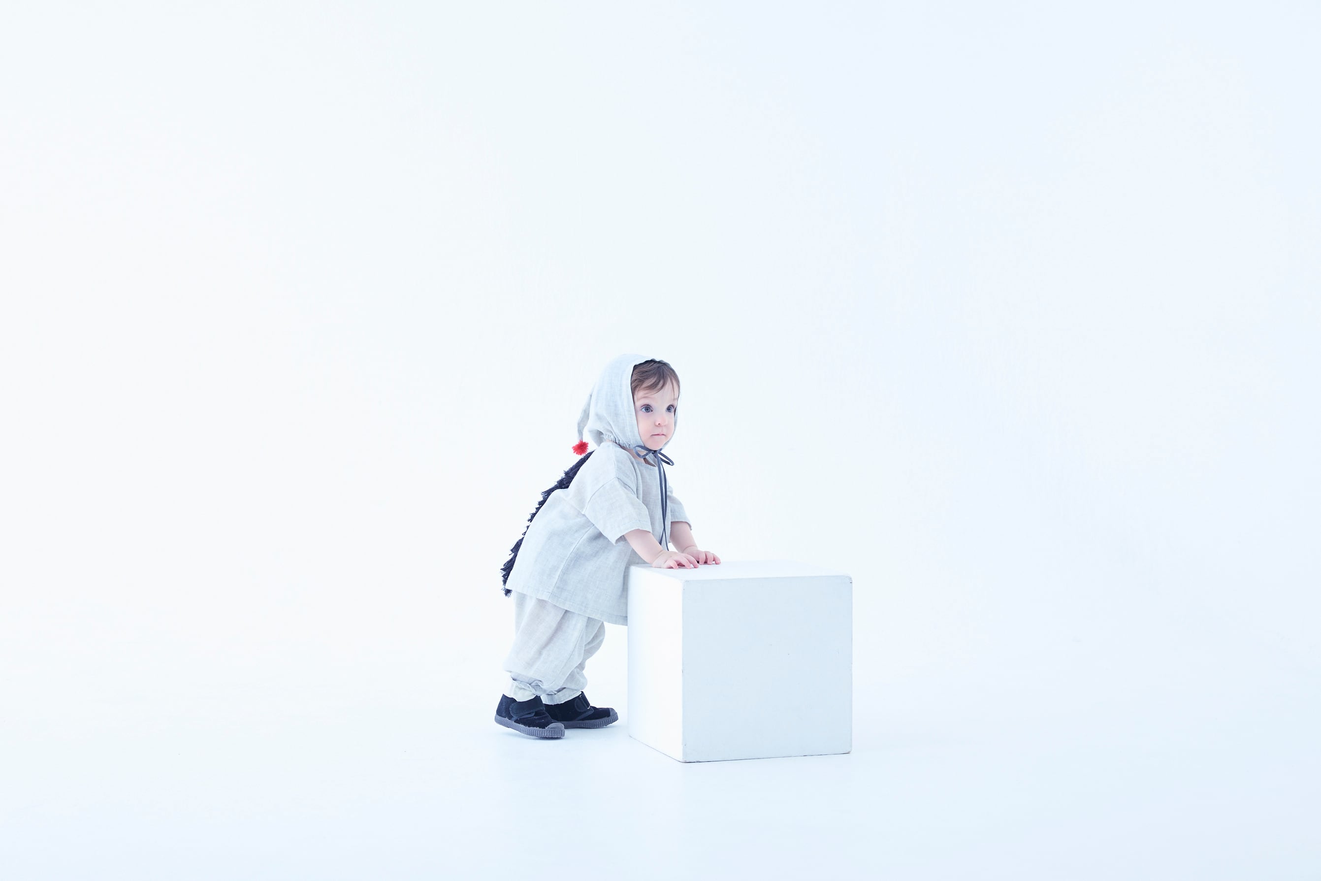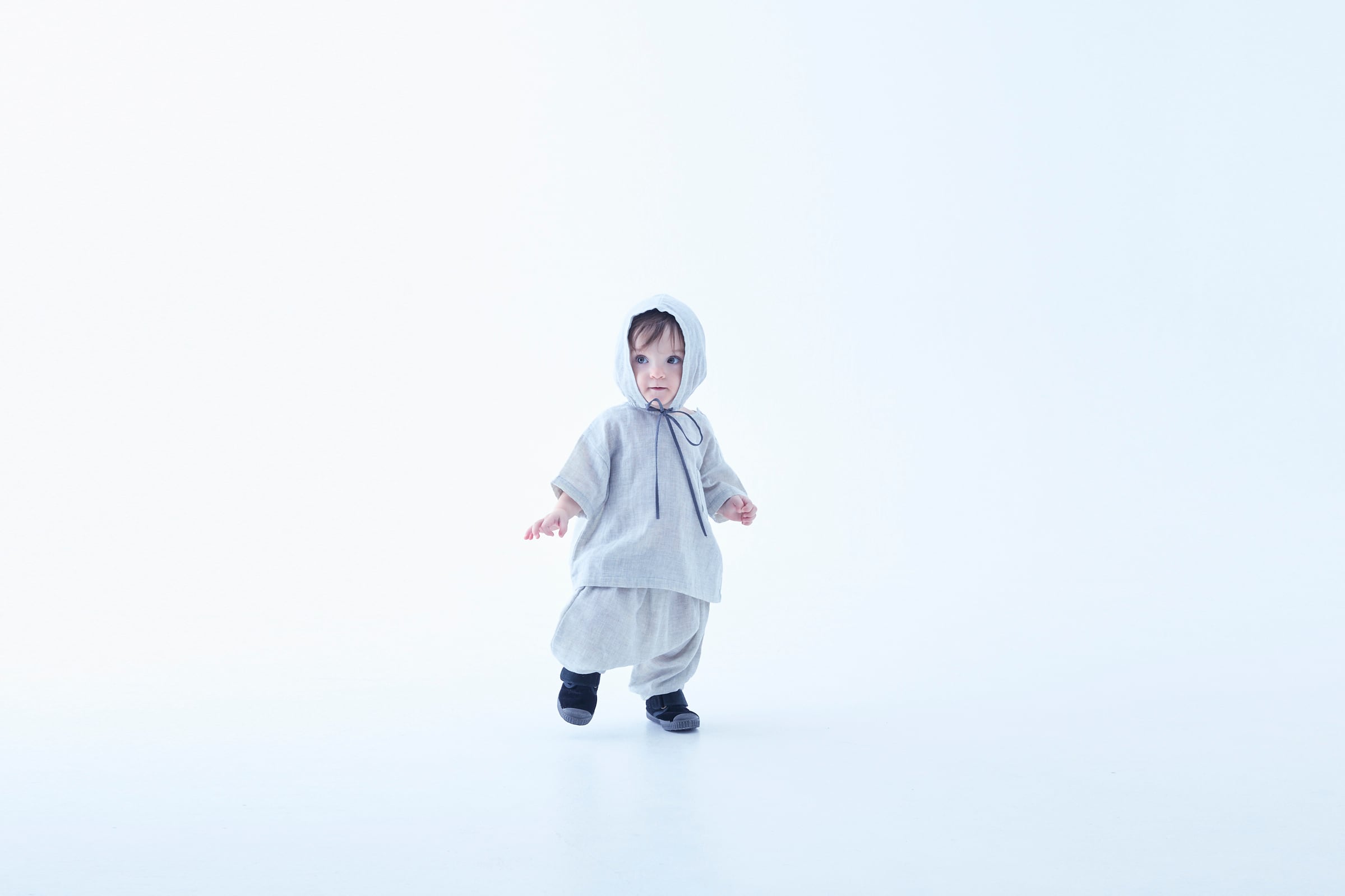 幼い横顔に懐旧の気配を添えます。