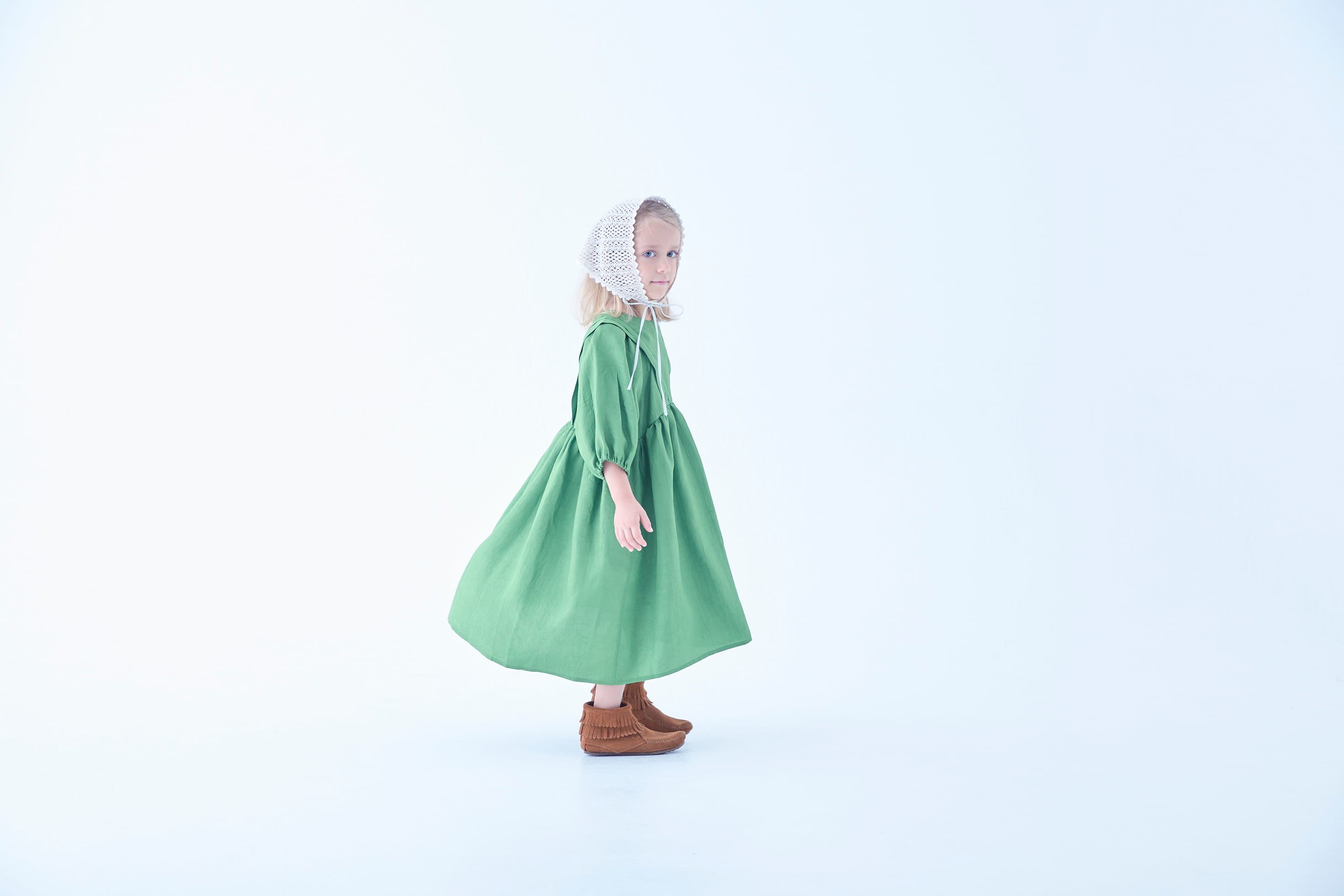〈 eLfin Folk 26SS 〉 Vintage taffeta Dress / green / 90-110cm