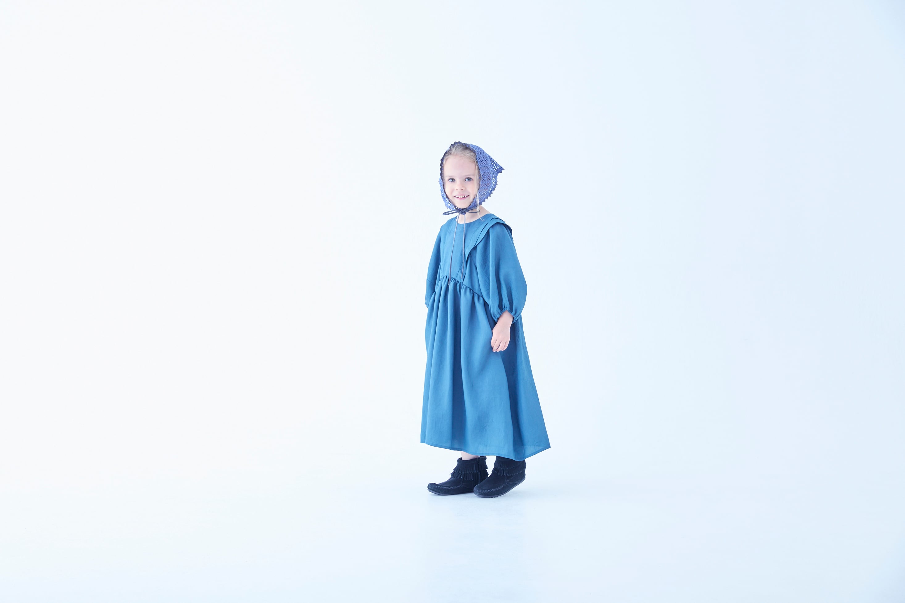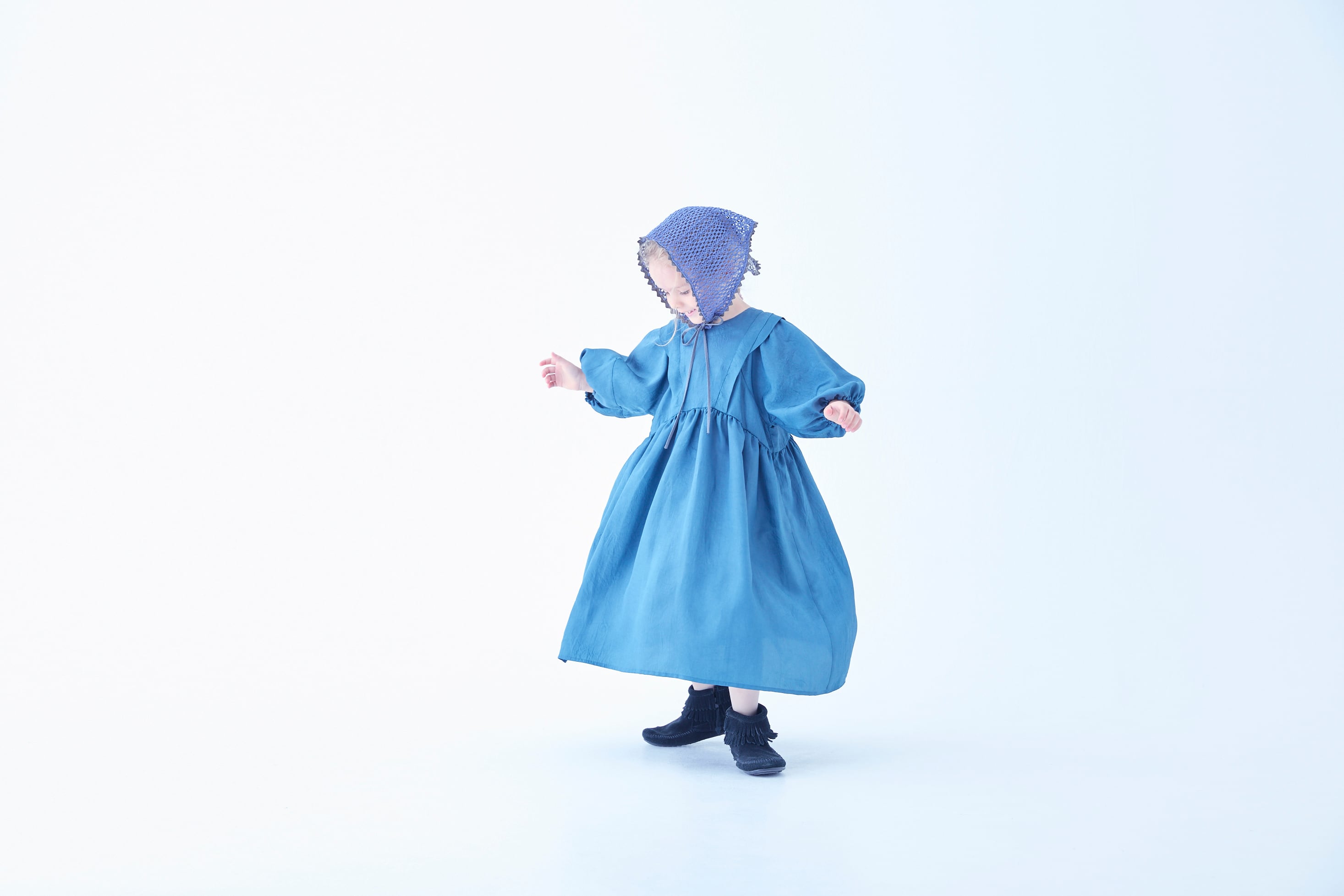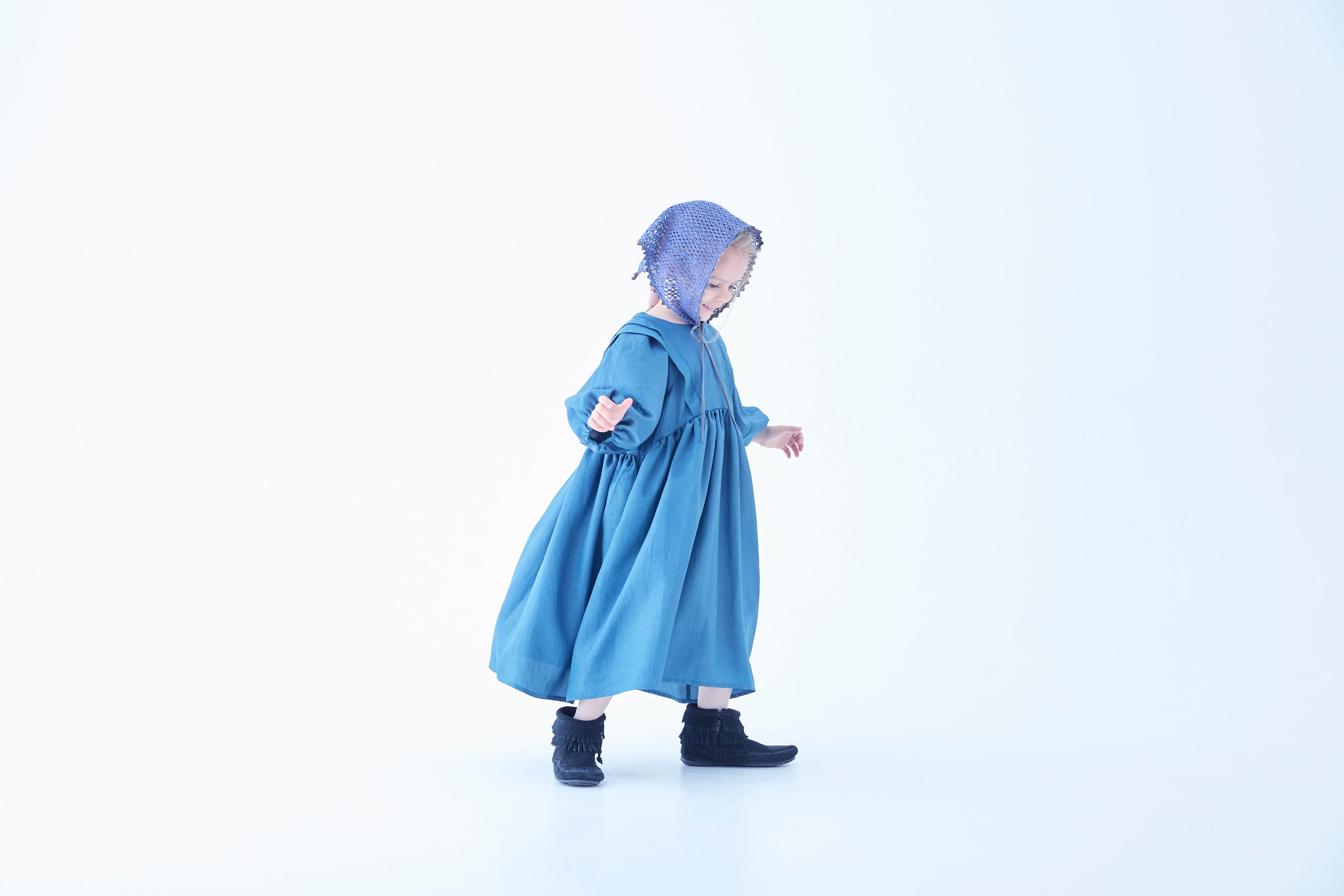 〈 eLfin Folk 26SS 〉 Vintage taffeta Dress / blue / 90-110cm