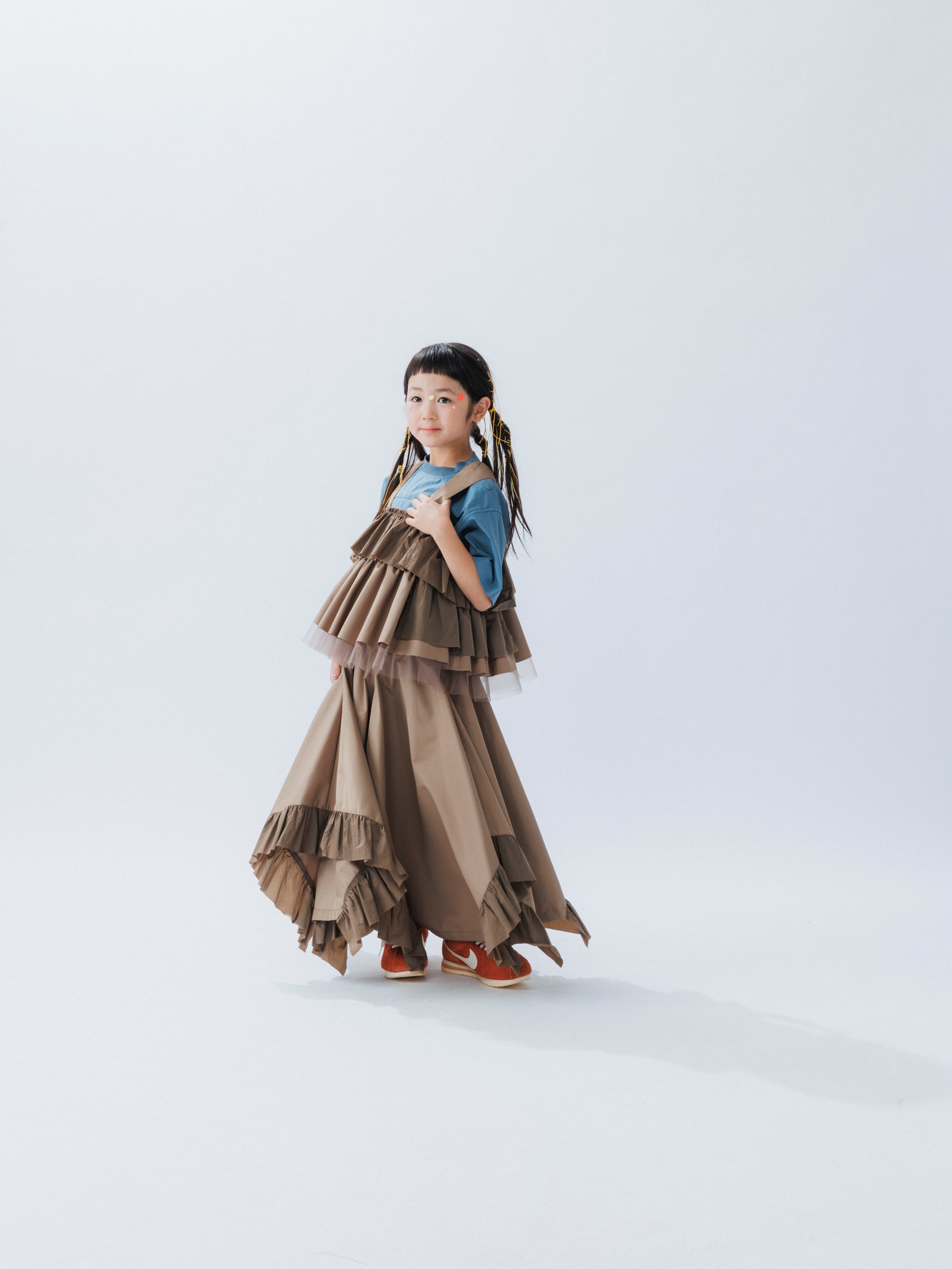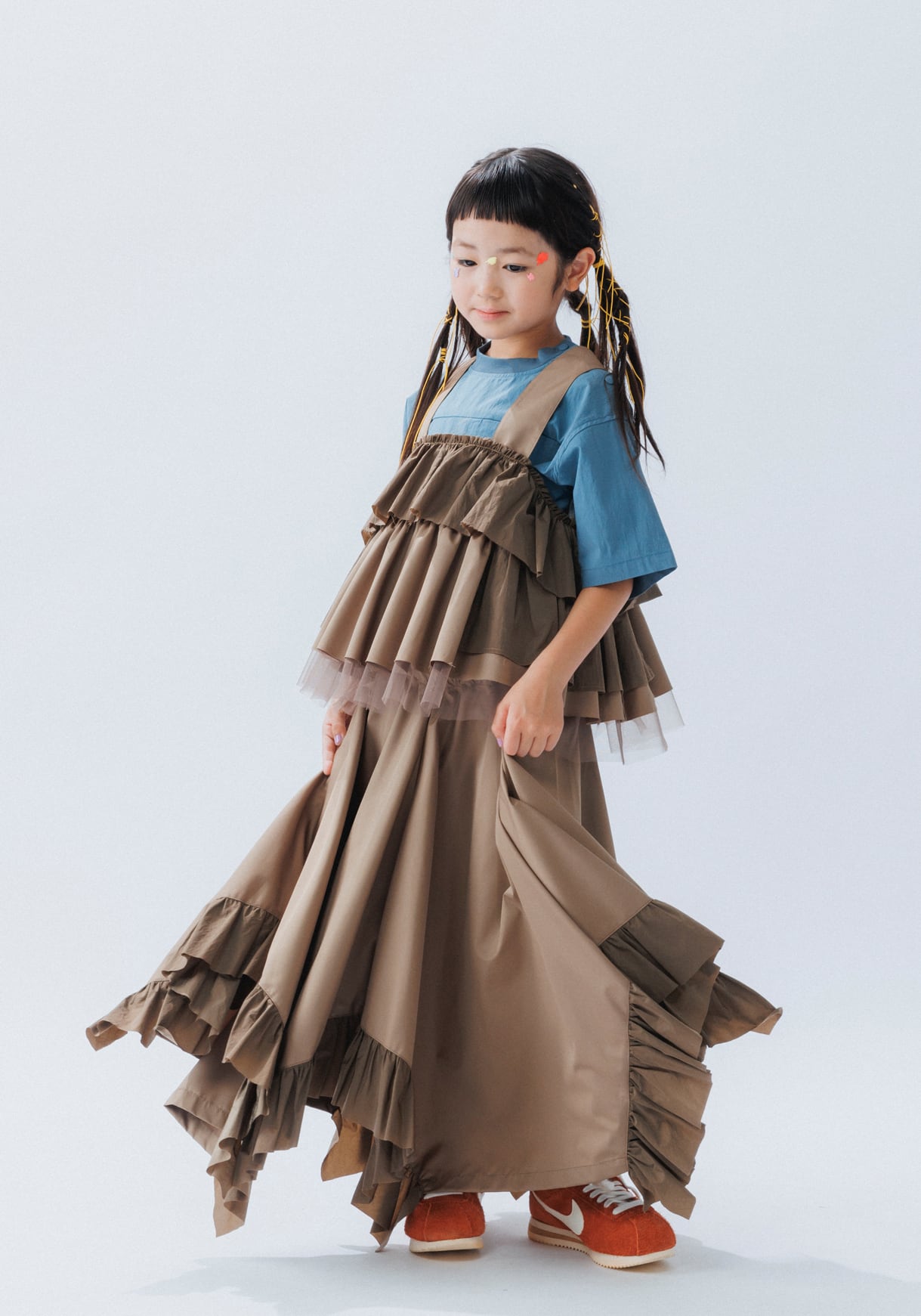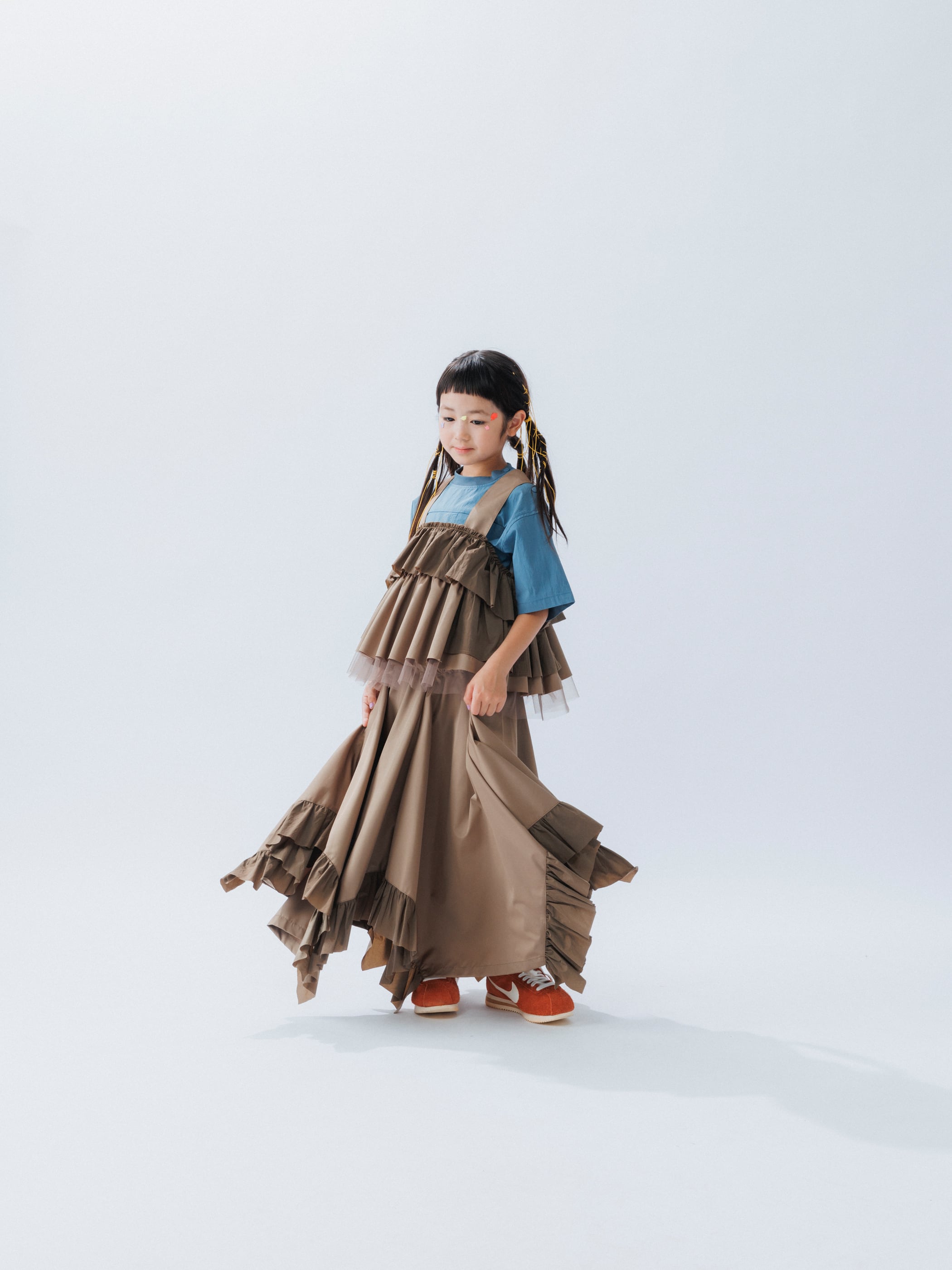 独特のパターンメイキングと、そこから繋がる独創的なシルエットが特徴のキッズファッションブランド。商品単体ではなく、実際に着ることでその魅力が伝わる子供服は徐々にその人気が高まり始め、2014年のデビューからわずか数年で国内外から幅広い層のファンに支持されている。デザイナーは共にファッションの世界で業績を積み上げてきたスペシャリストで、子を持つ親としての目線が加わることで、さらに完成度を高めています。