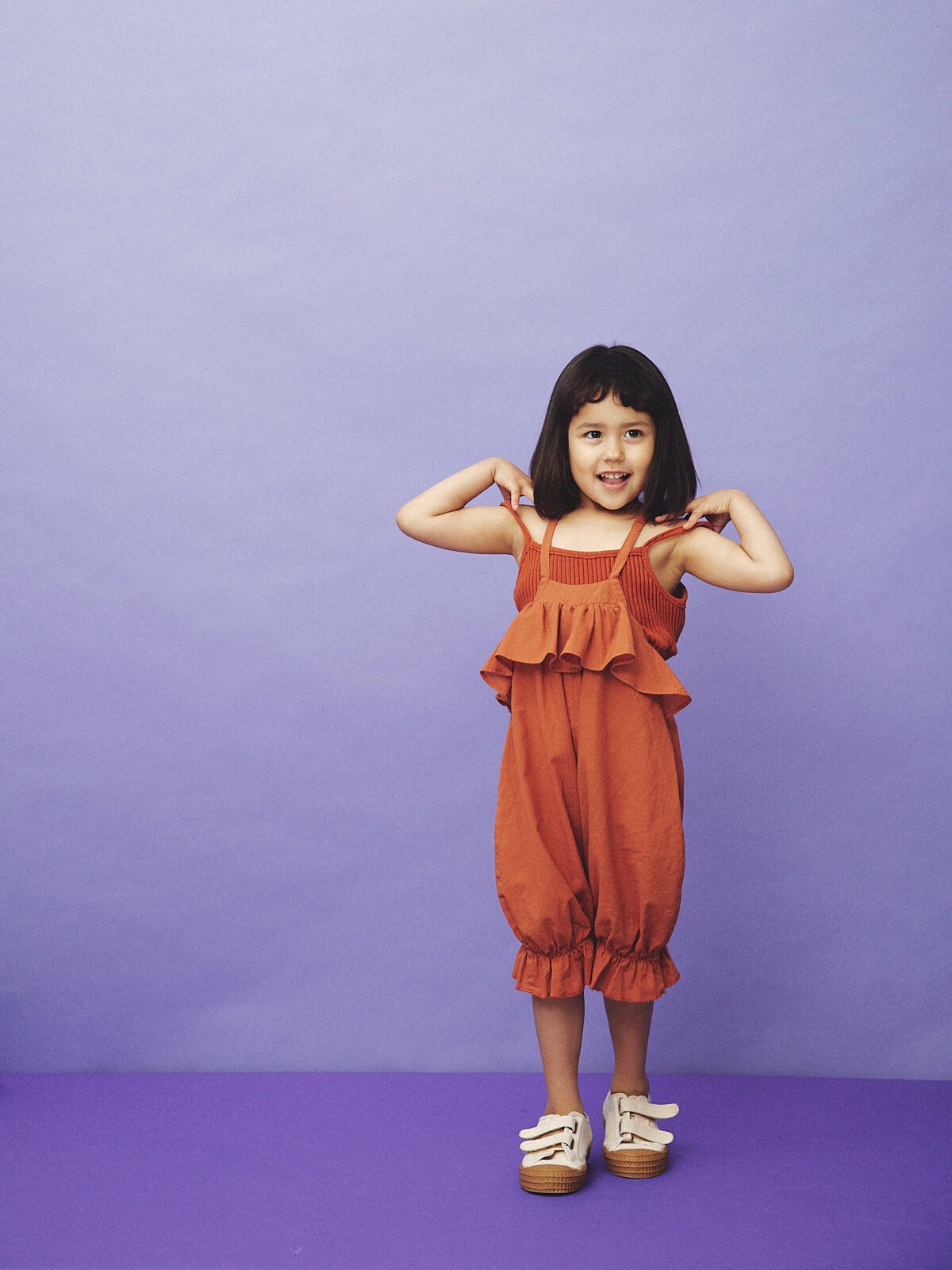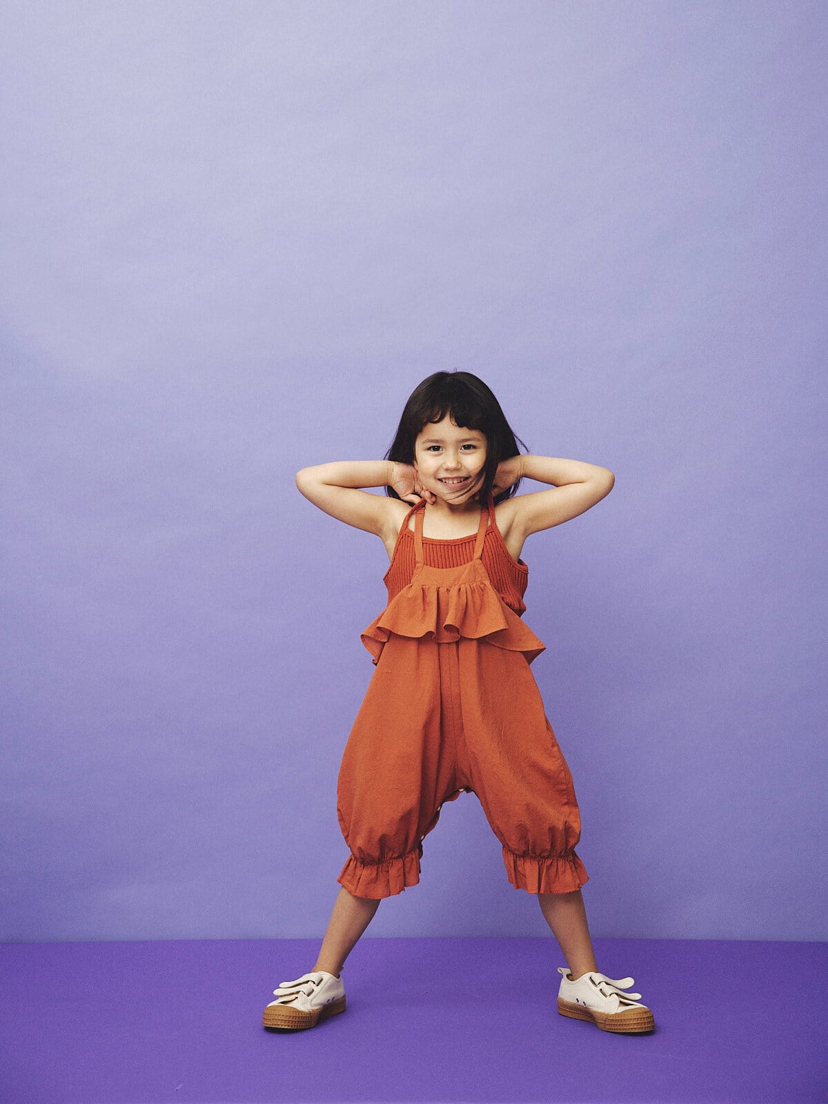 そんな思いからバランスにこだわりをもって デザインされたこども服。いつまでも愛着のある子供服と笑顔を引き出すモノヅクリを目指している。