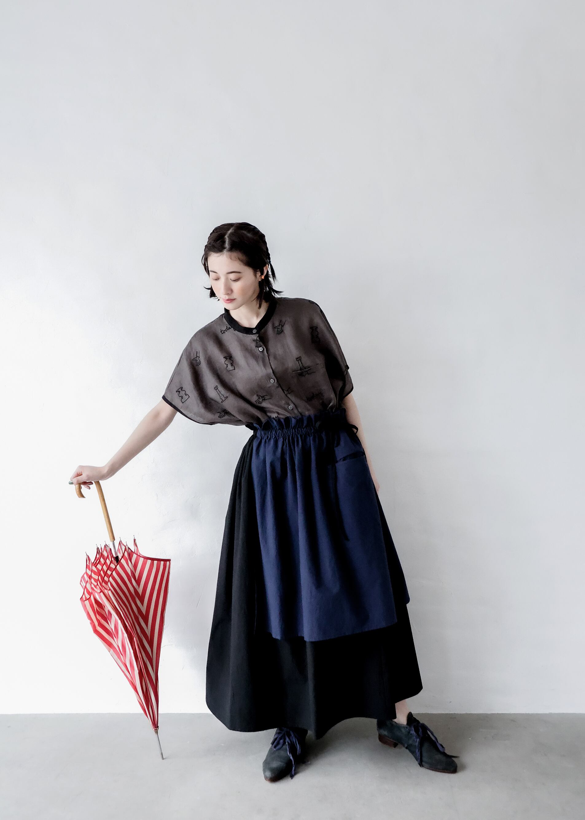 〈 michirico 26SS 〉 Big pocket gathered skirt / ブラック / ADULT