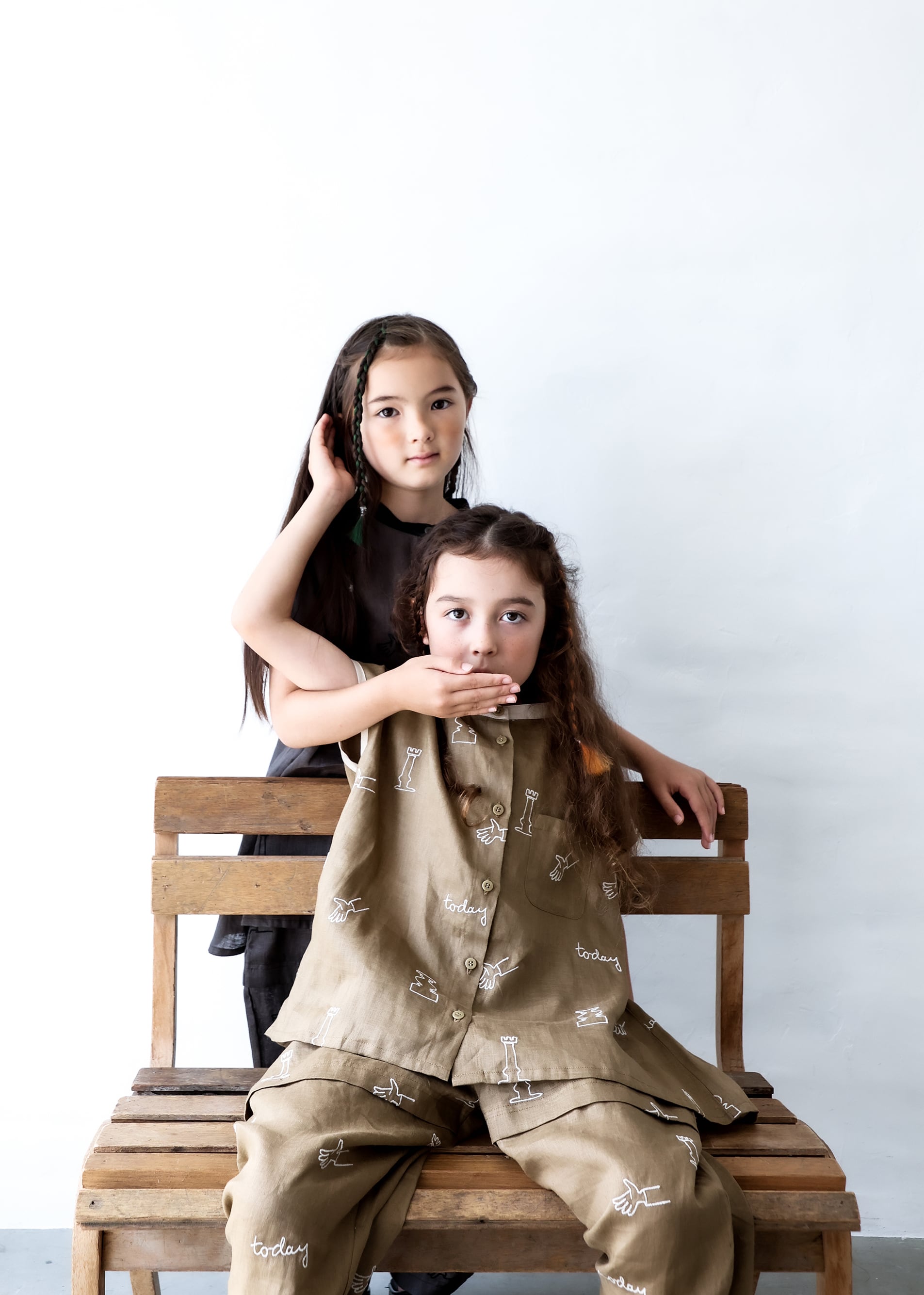 〈 michirico 26SS 〉 My favorite day collarless shirts / カーキ / KIDS