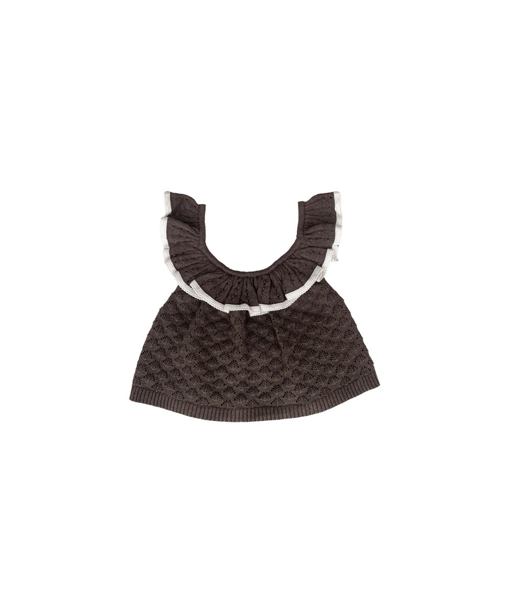 コントラストの効いたトリムをあしらった、繊細なレース編みで仕上げています。