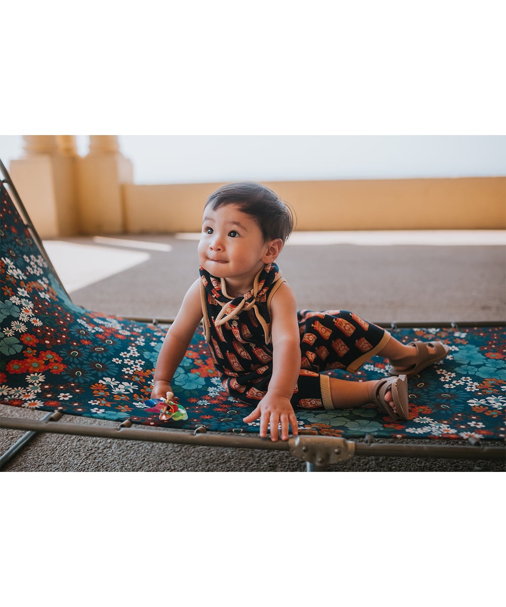 ショート丈のロンパース。着心地の良いAラインシルエットです。