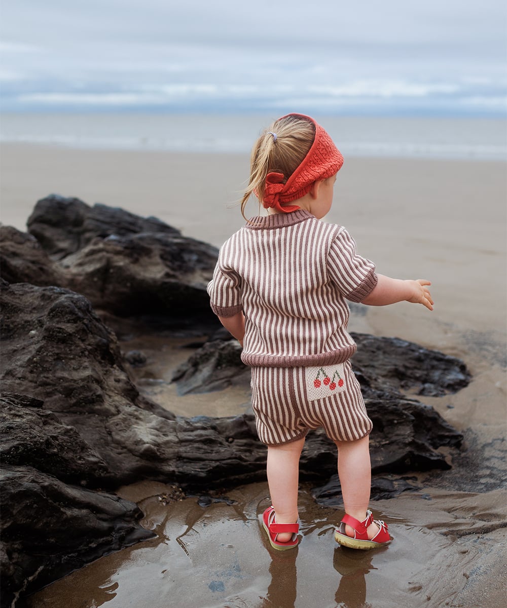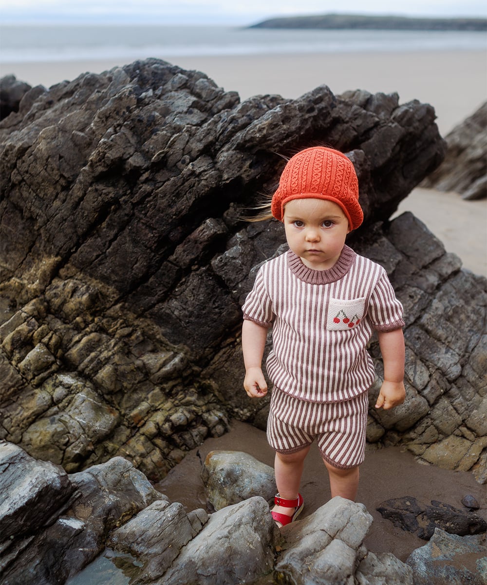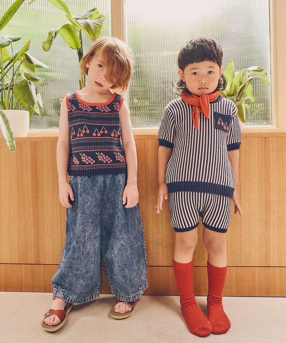 ゆらりと波打つようなケーブルリブ編みのプレーンニットで仕上げています。