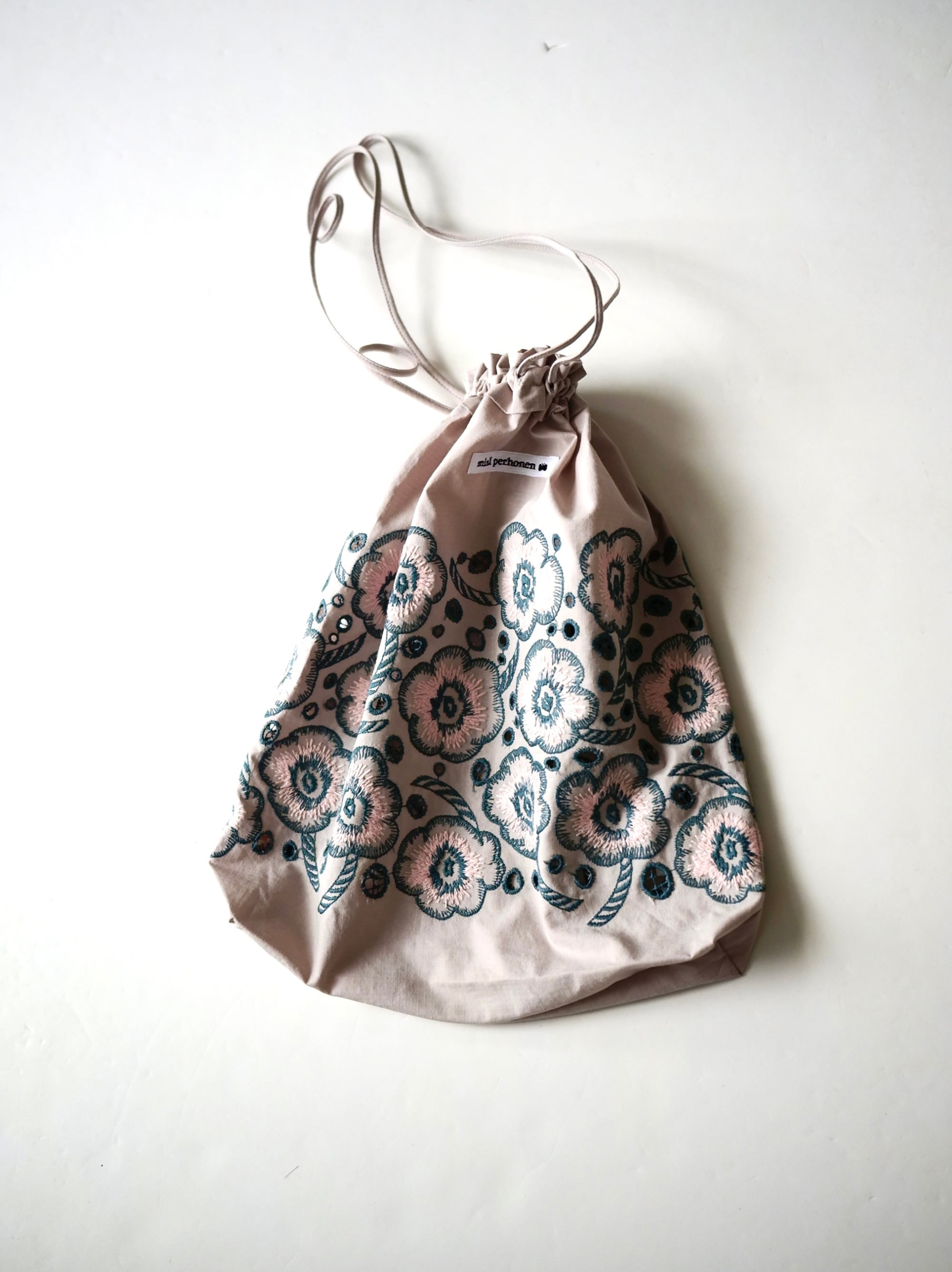 テキスタイル “candy flower” のバッグ。