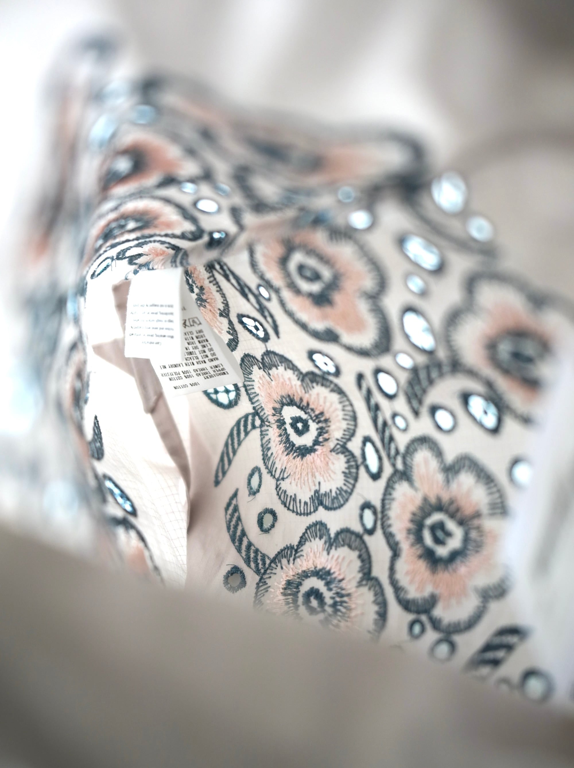 生地いっぱいに広がる花の刺繍。