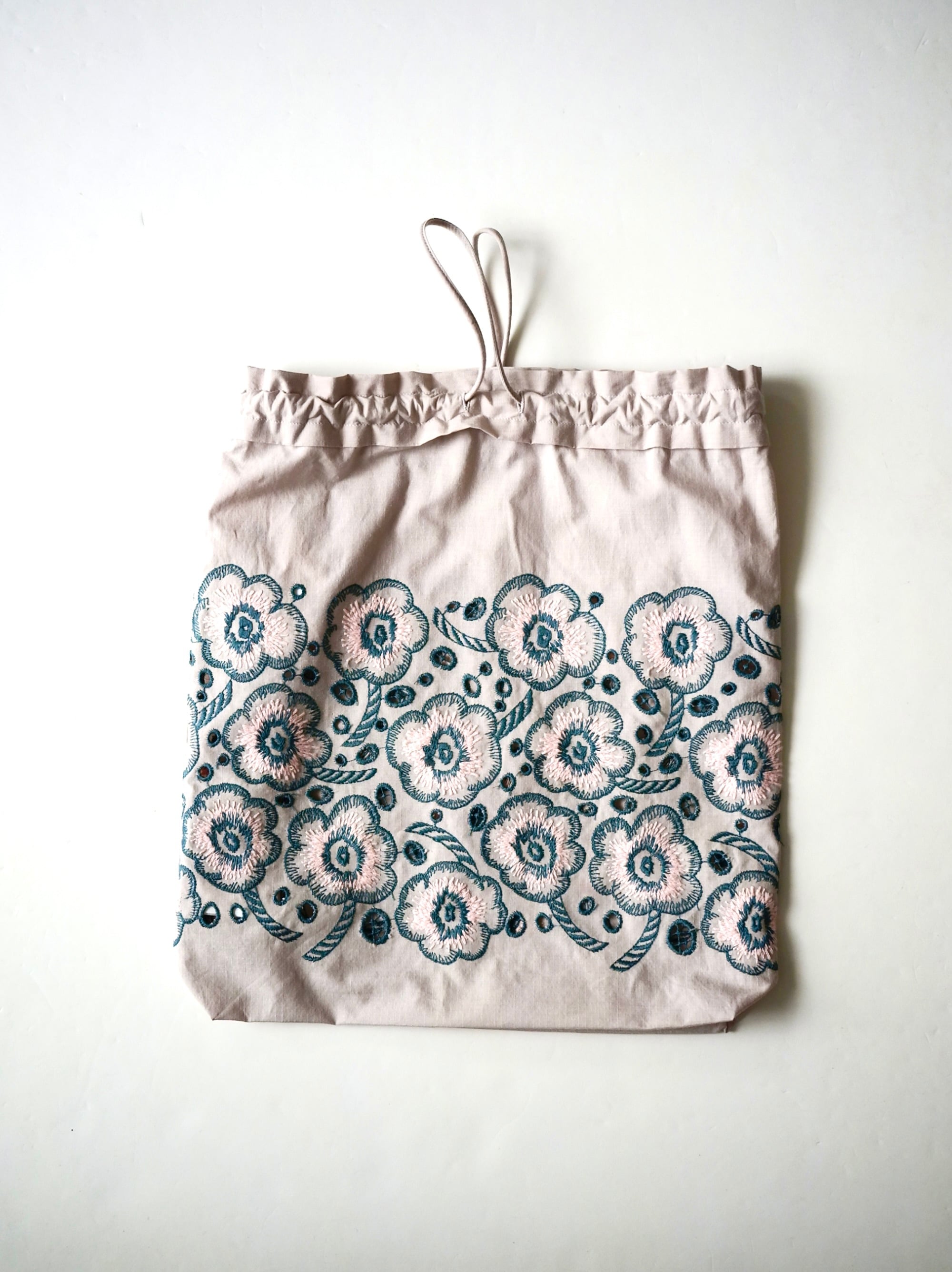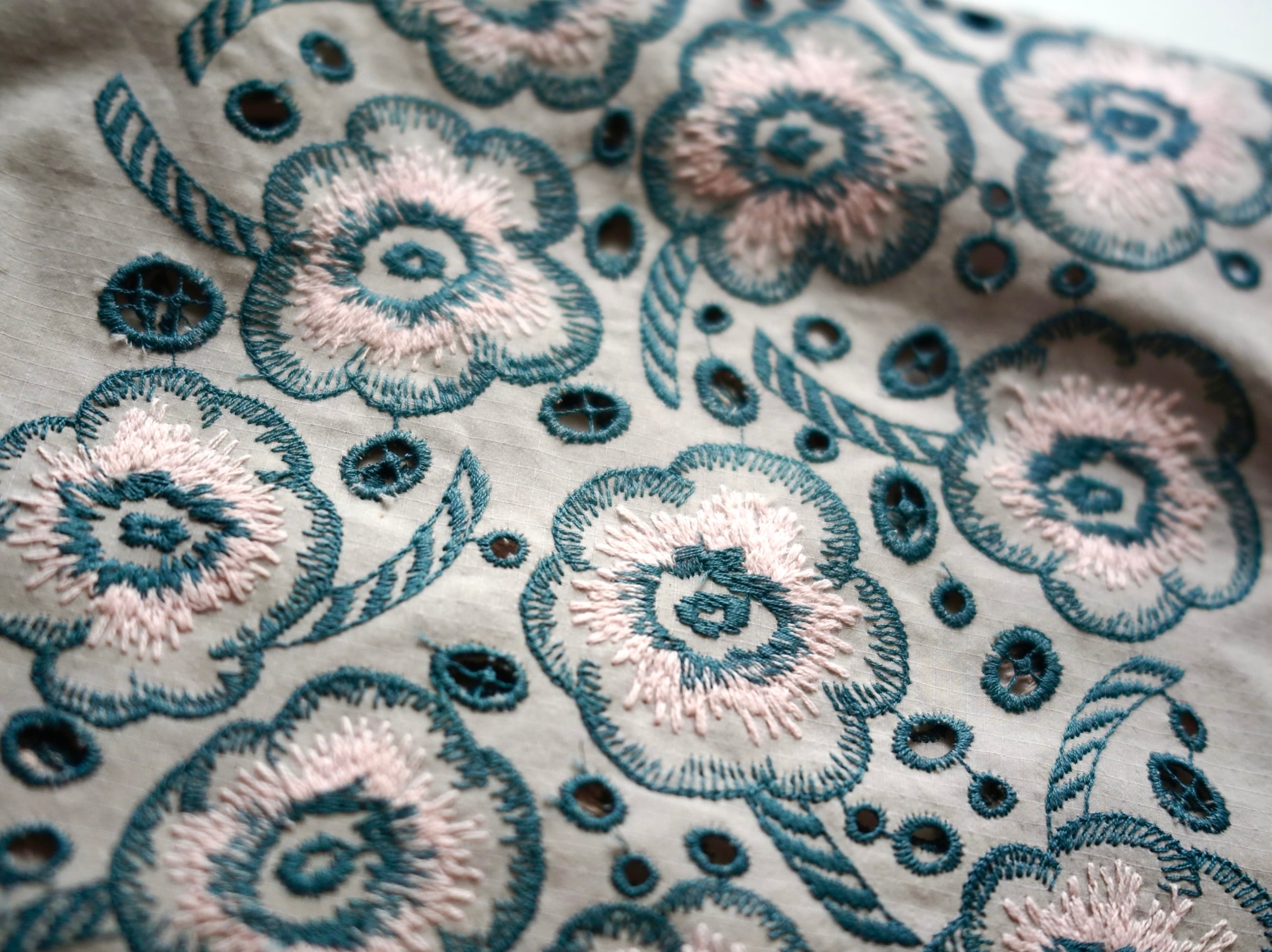 生地いっぱいに広がる花の刺繍。