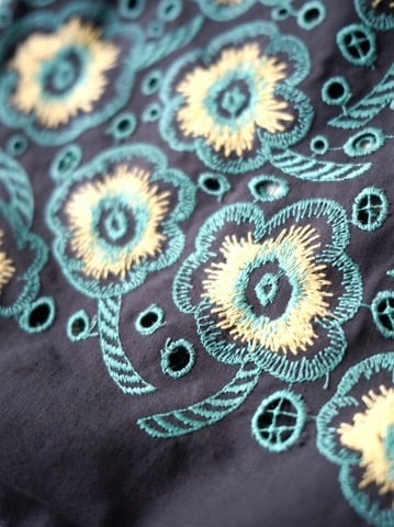 生地いっぱいに広がる花の刺繍。