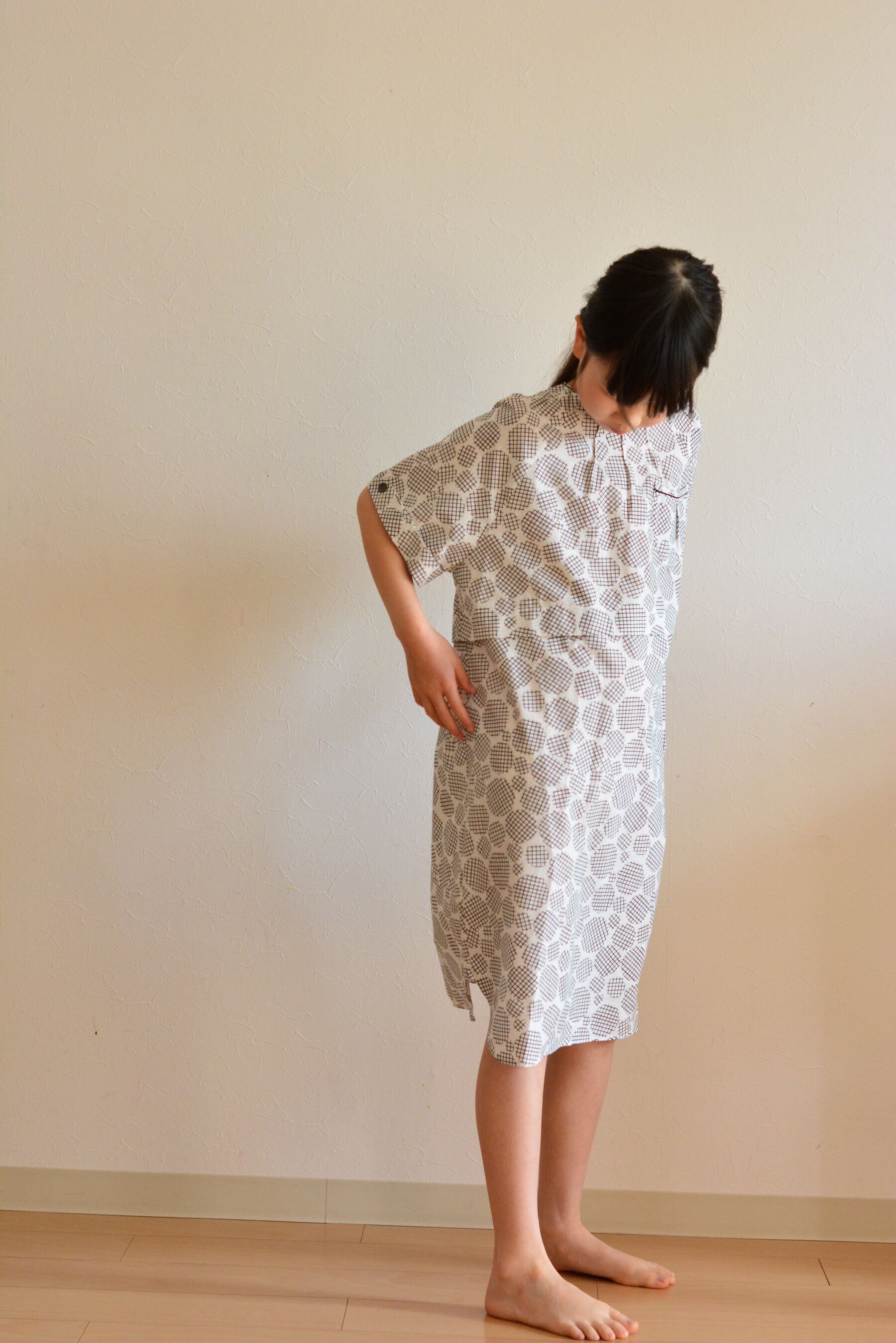 こちらのワンピースには、長く着ていただけるような仕掛けが御座います。 ウェスト部分にタックがあり、そちらほどくことで丈を伸ばすことができます。また襟ぐりのピンタックを外すことで首回りも大きくすることが可能。シャツは内側のステッチを解くことでリサイズが可能です。 長くお使いいただくことで、経年変化も楽しめる一着です!