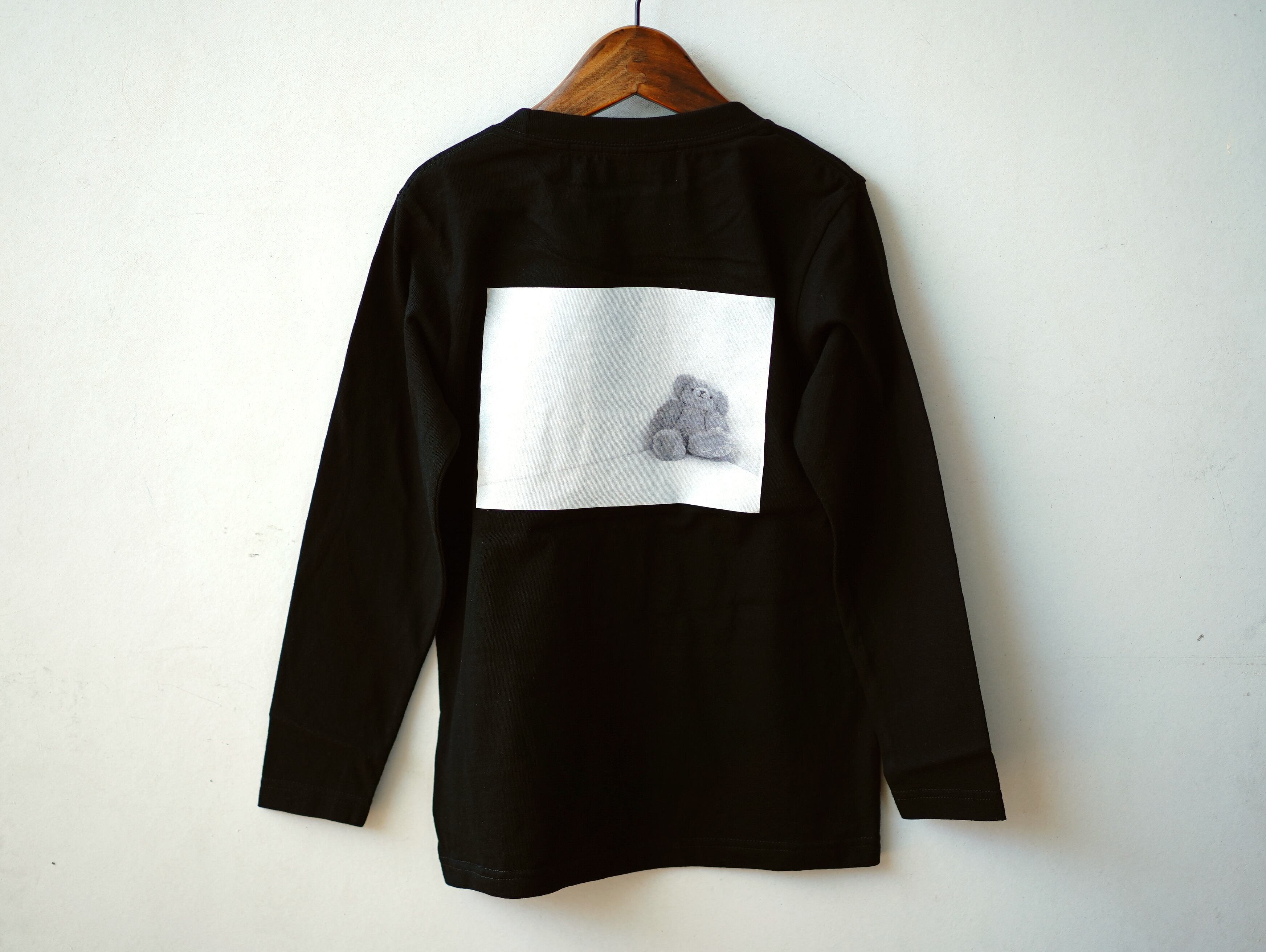 静かに佇むテディーベアのバックプリントが印象的なカットソー。
