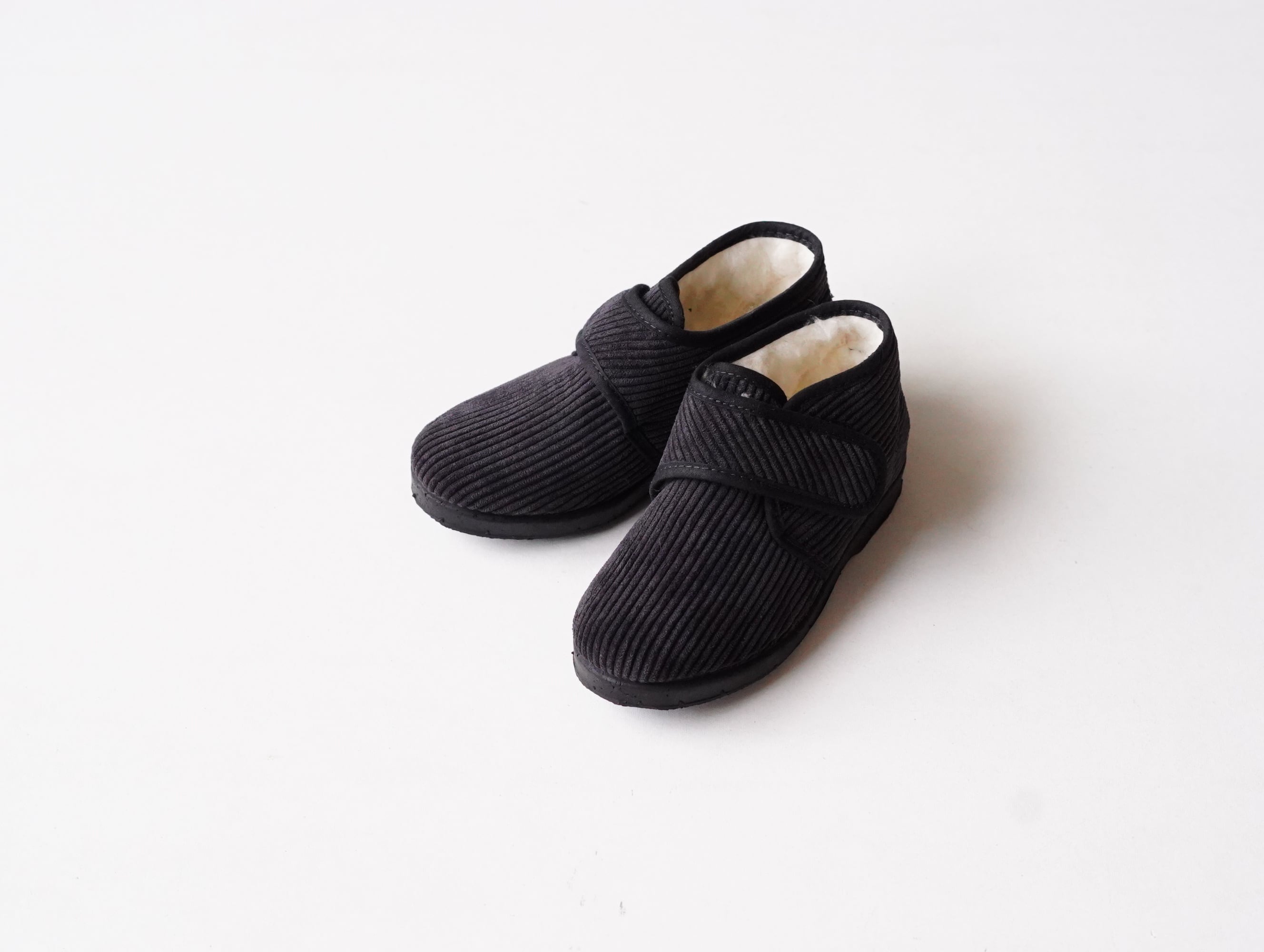 コーディロイとインナーボアをあしらったスニーカータイプのブーツ。 スペイン東部の130年続く工房で作られるシューズは、上品な雰囲気と履き心地の両方を兼ね備えています。マジックテープで着脱は簡単に。カカトのロゴ、ボックスデザインも好評いただいています。