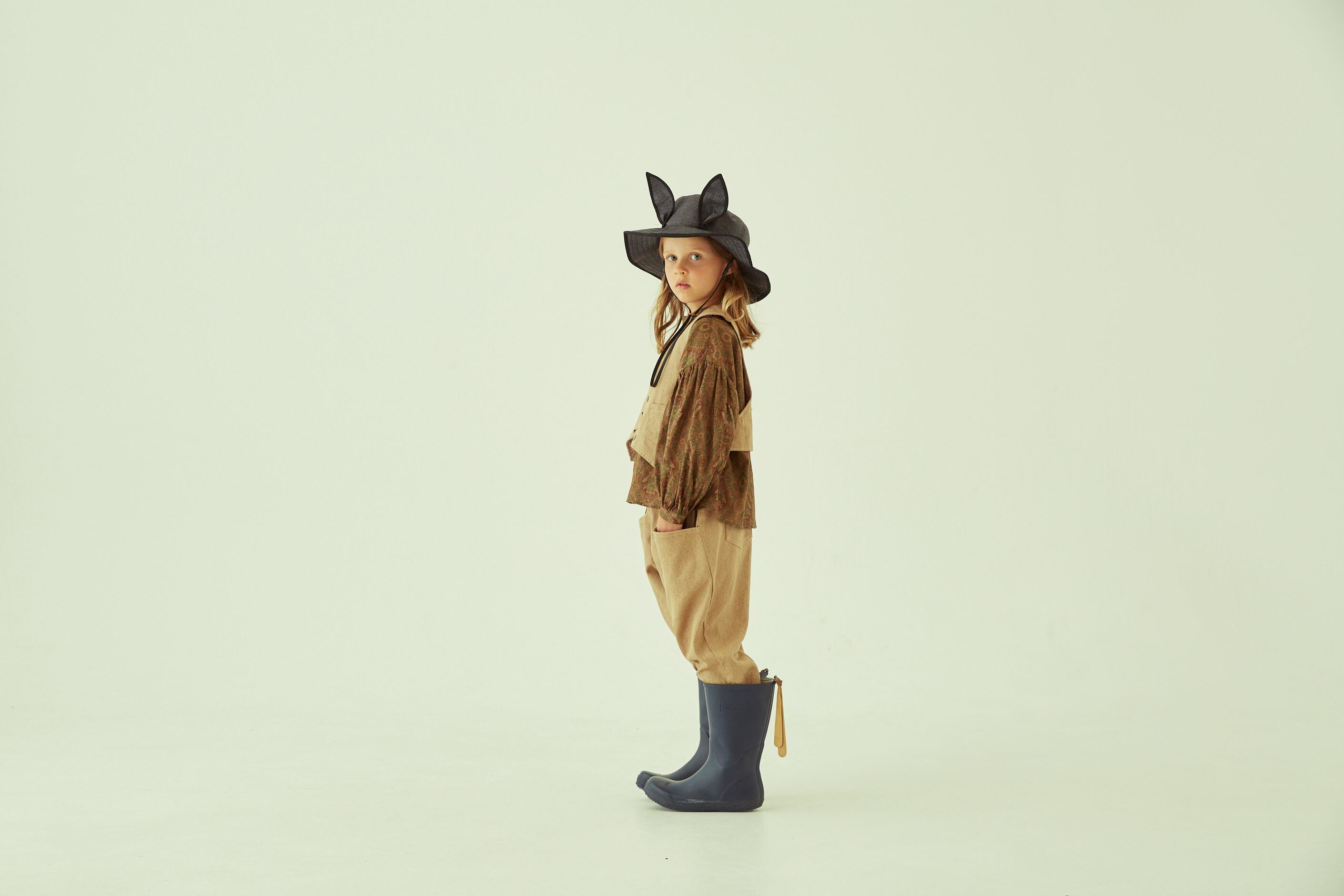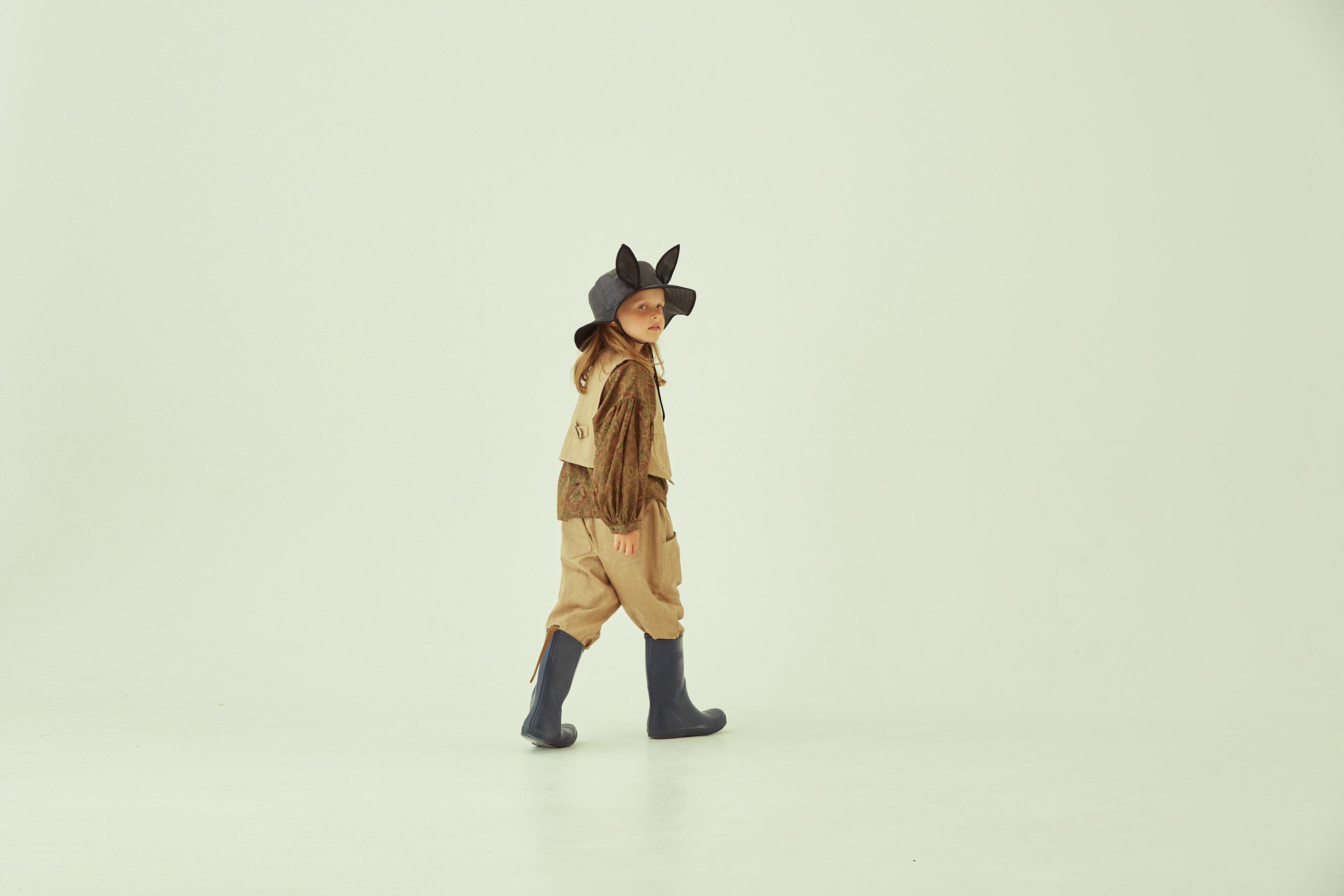 妖精の意である elf , elfin と 民族の意であるfolk を合わせた名前のこのブランドは、見えないけれど存在する妖精たちの民族衣装のような、どこかの異国を思わせるノスタルジックさと空想的な雰囲気をもつ、良い素材で丁寧につくられたいたずらな妖精たち=ちいさなこどもたちが毎日繰り広げる冒険のための服です。