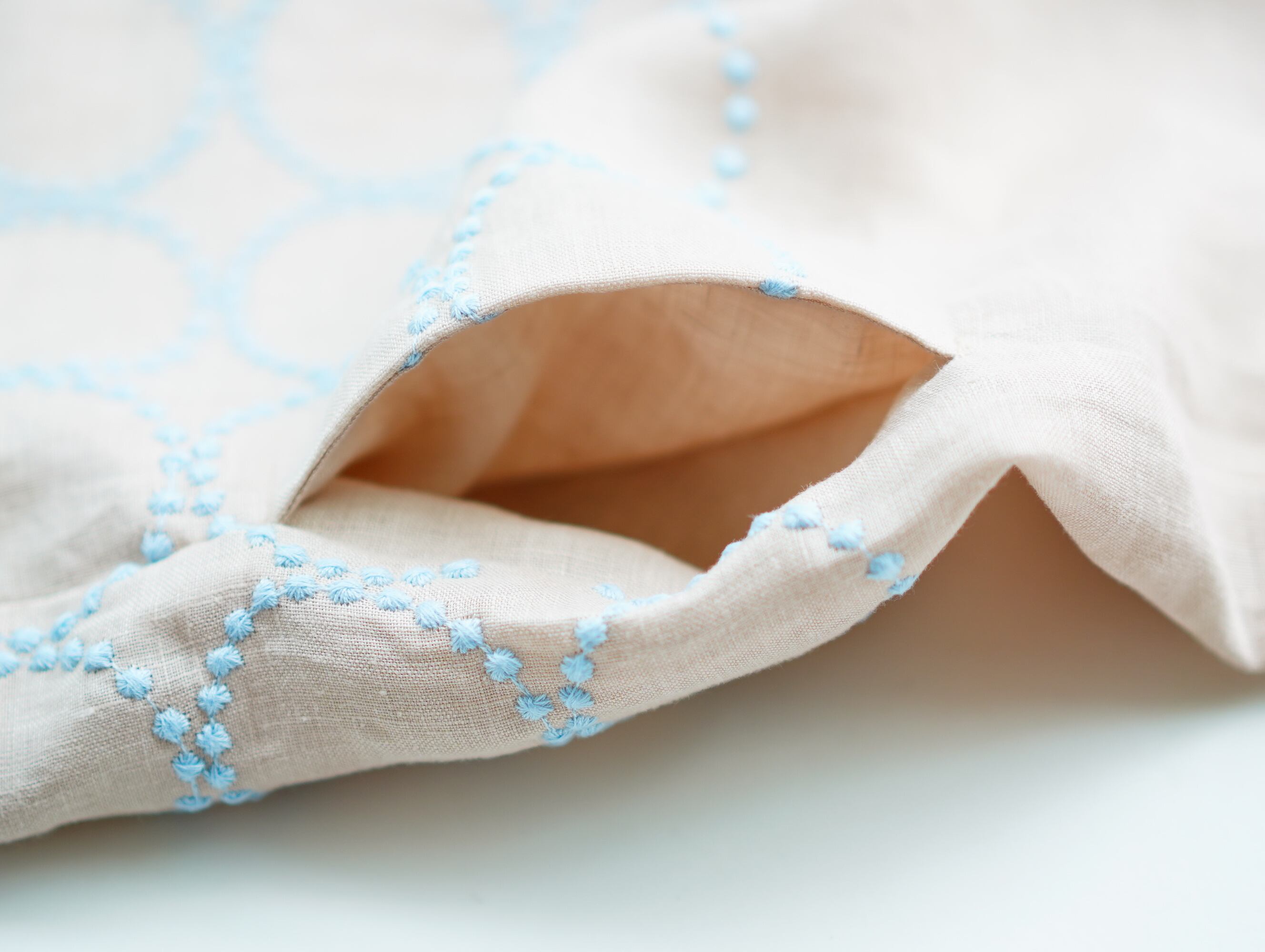 高密度で織り上げたリネンで仕立てられた子供らしさが溢れるドレスを仕立てました。夏の風景に溶け込んでいくような清涼感のある1着は、日々のお出かけの時間を高揚感で包み込んでくれそうです。