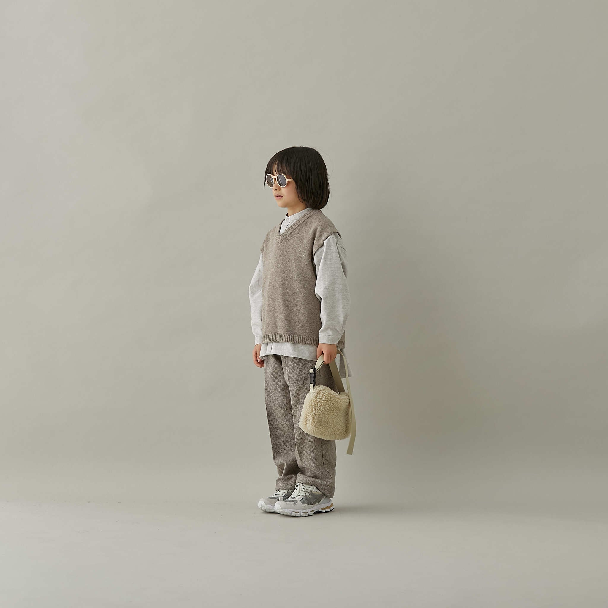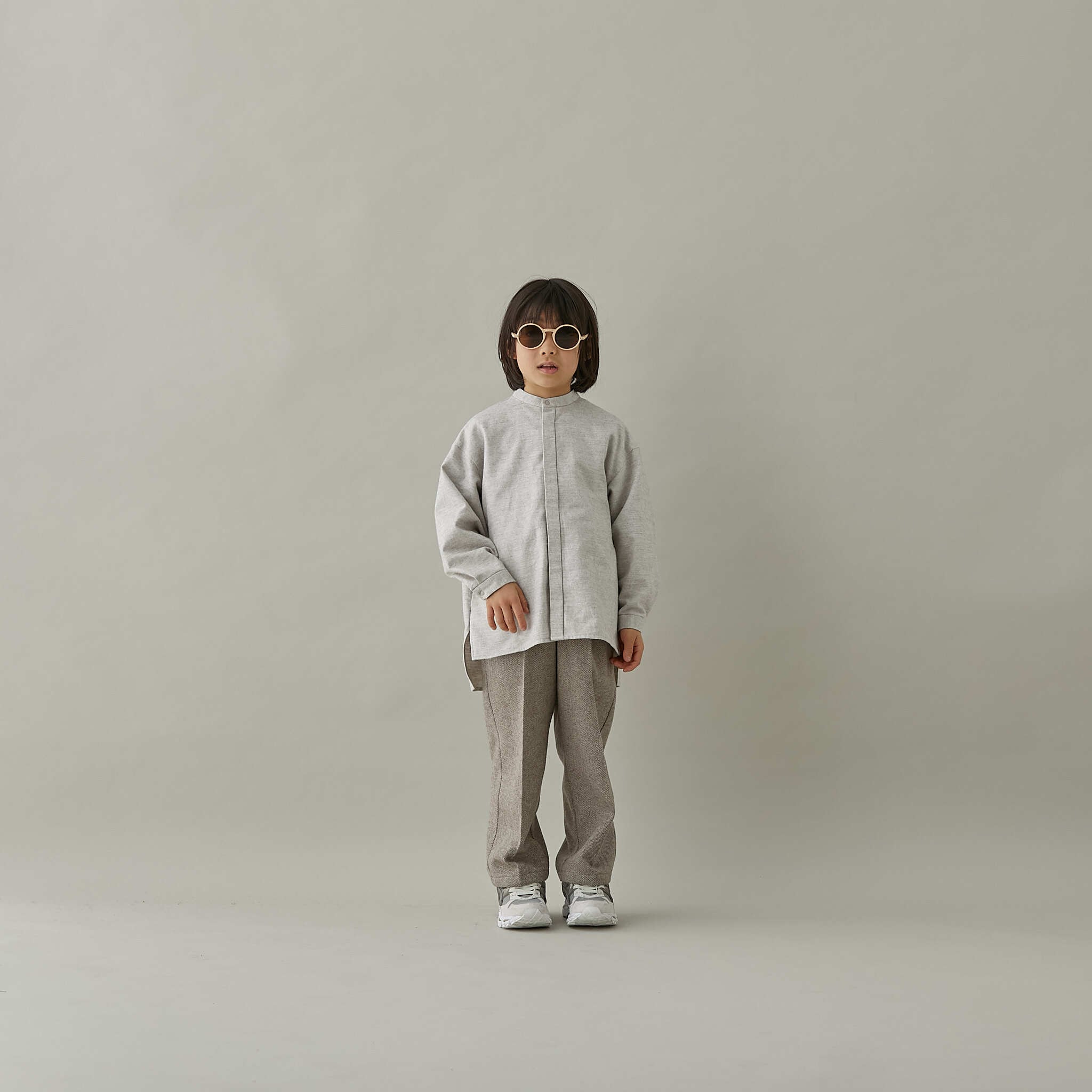 ワイドなリラックスシルエットと杢調のナチュラルな色味で、優しい雰囲気になっています。