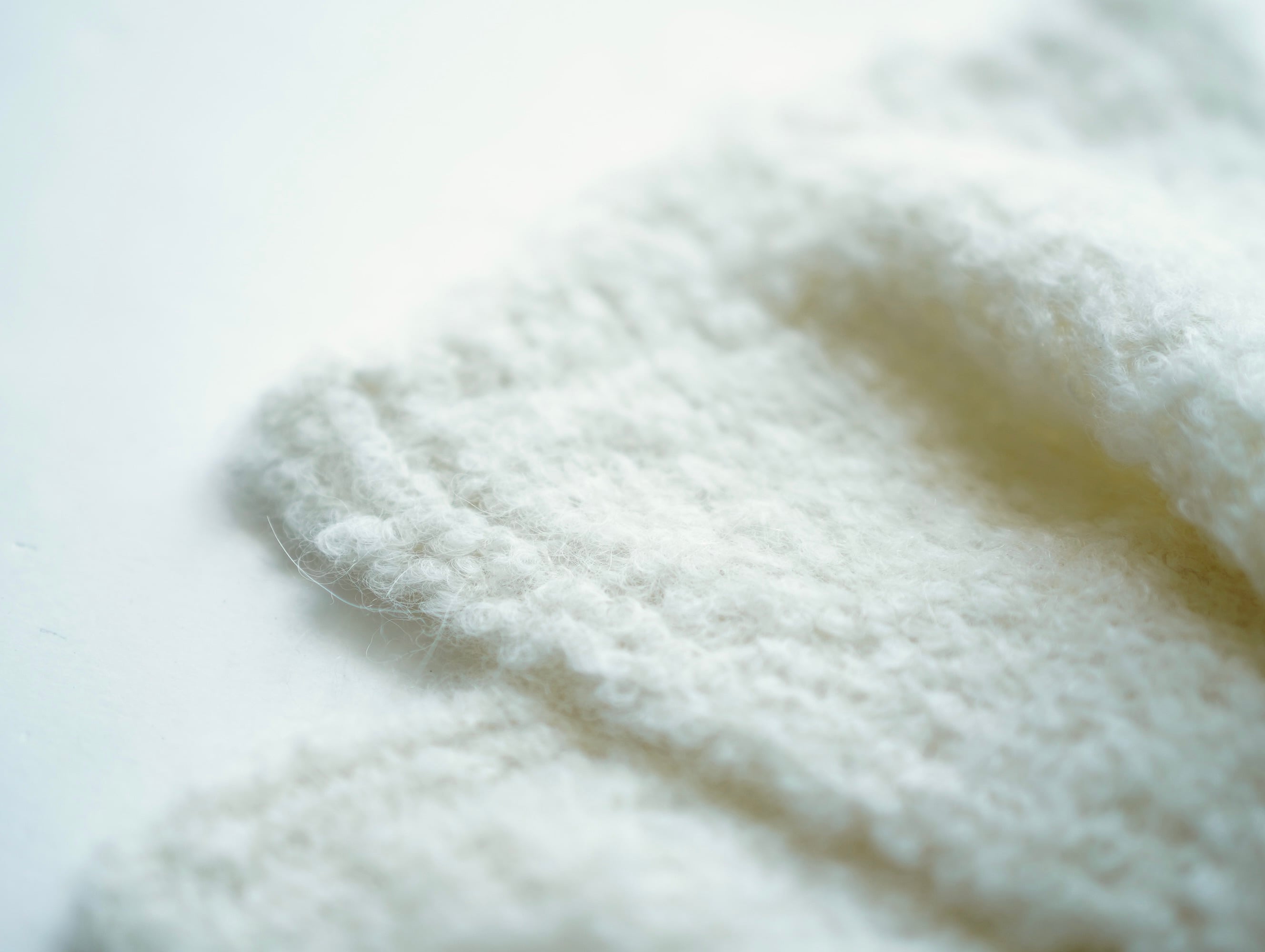 { material } ベビーアルパカ89% ナイロン11% レース部分/綿100%