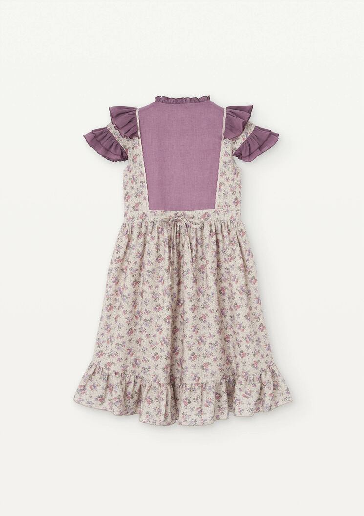 ポペリンの「モーブフローラル フリル付きコントラストドレス」は、 オーガニックコットン90%とリネン10%の天然素材を使用し、 お子さまの肌に優しい一着です。 袖口、ネックライン、サイドに施されたガーゼフリルとレースが、 繊細なアクセントを加えています。 背面のウエストはドローストリングで調整可能で、 フロントは被せボタンで開閉し、 着脱も簡単です。 裏地には100%オーガニックコットンを使用し、 肌触りの良さを追求しています。