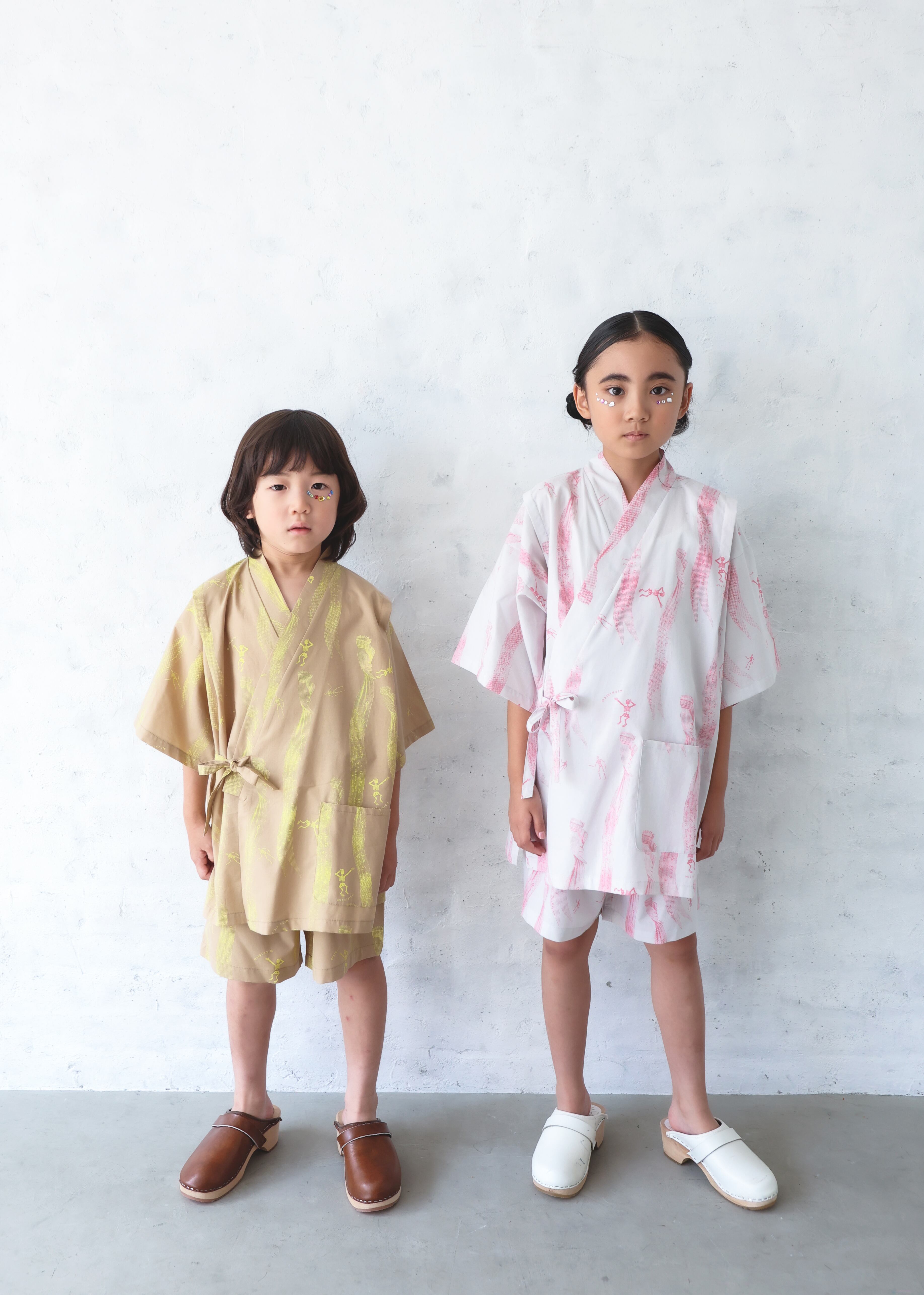 〈 michirico 25SS 〉 My dear Mexico TEX Jinbei "甚平" / ピンク / S (90-100)〜M (100-115) /