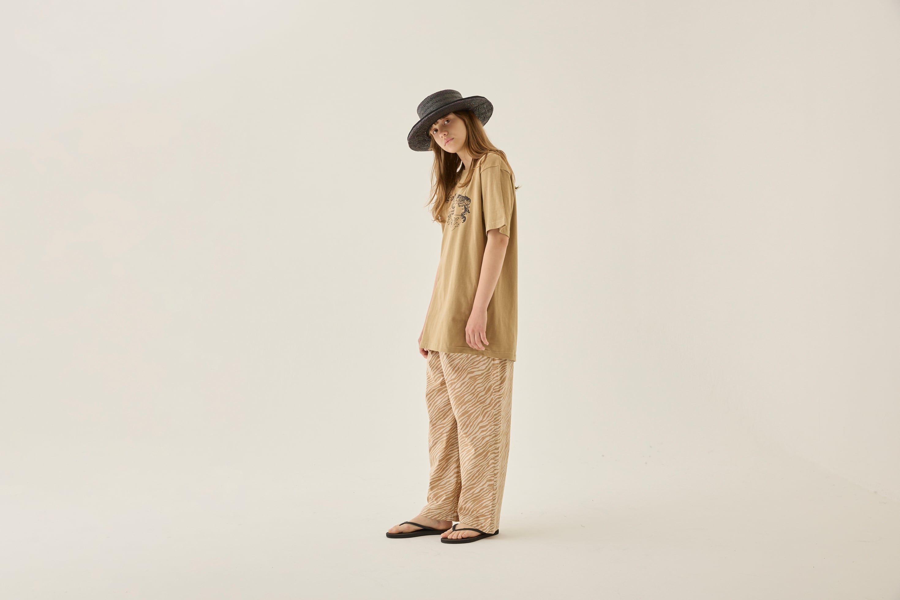 (おとな)〈 eLfin Folk 25SS 〉 womens Zebra Wide Pants "ワイドパンツ" / elf-251F57 / beige