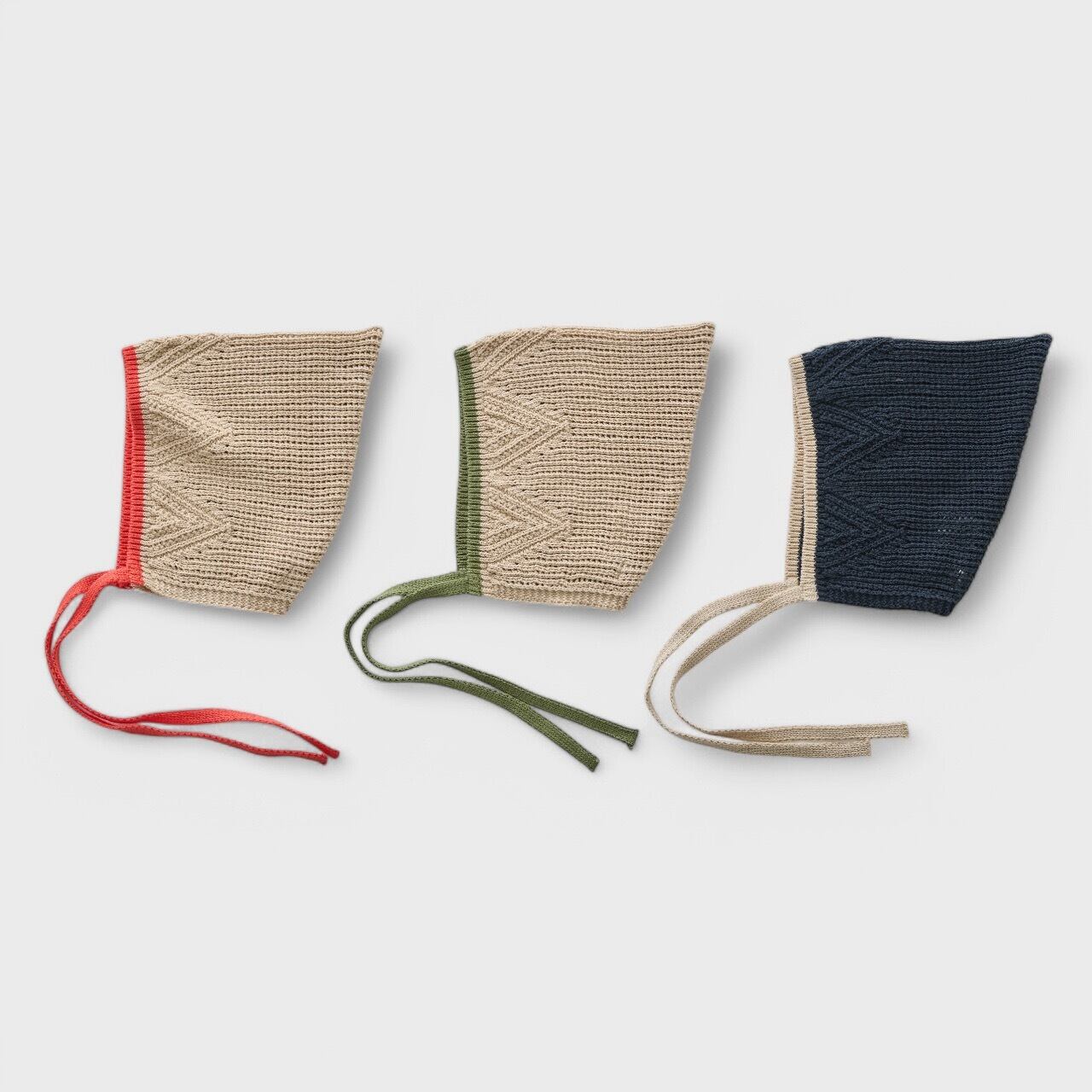 〈 eLfin Folk 25SS 〉 Lacework Knit Baby Bonnet "帽子" / elf-251K58 / beige×red