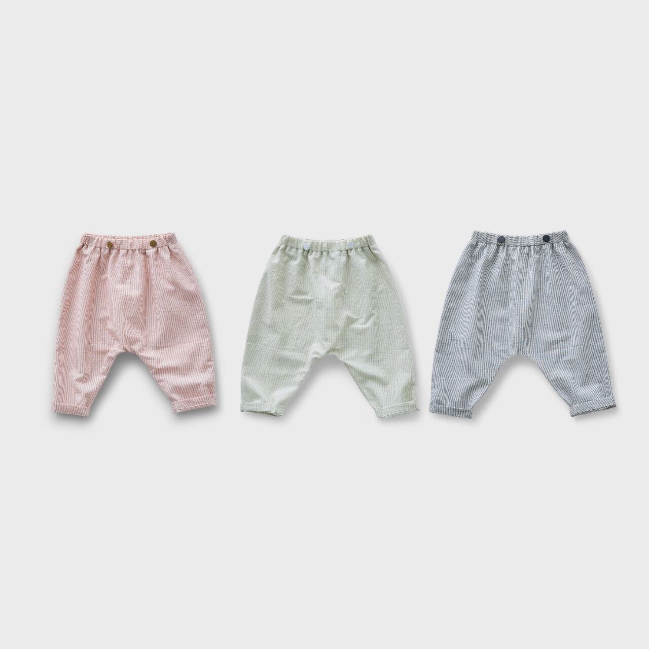 ベビーパンツはヒップがゆったりとしたシルエットでウェストのオリジナルeLf釦がアクセントです。