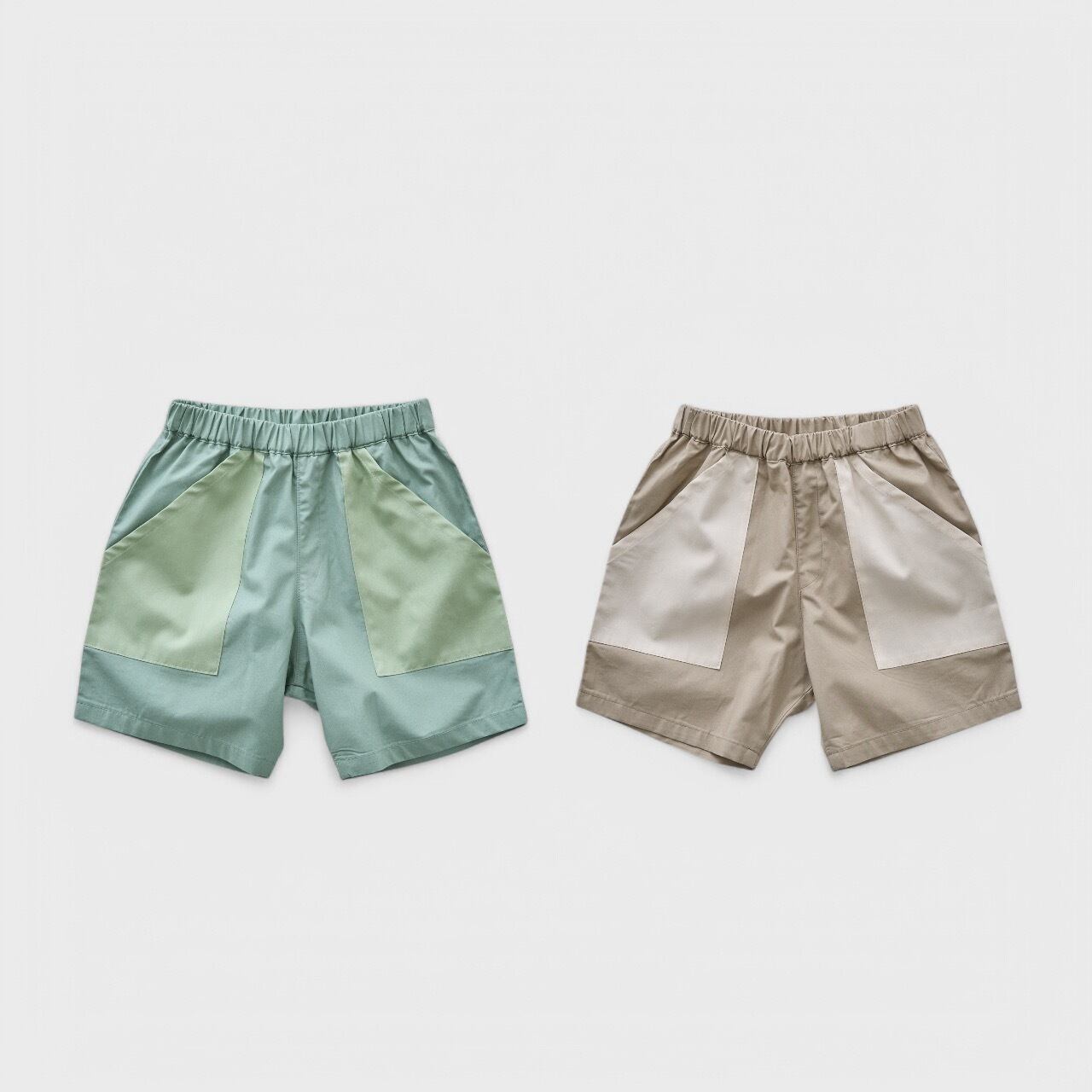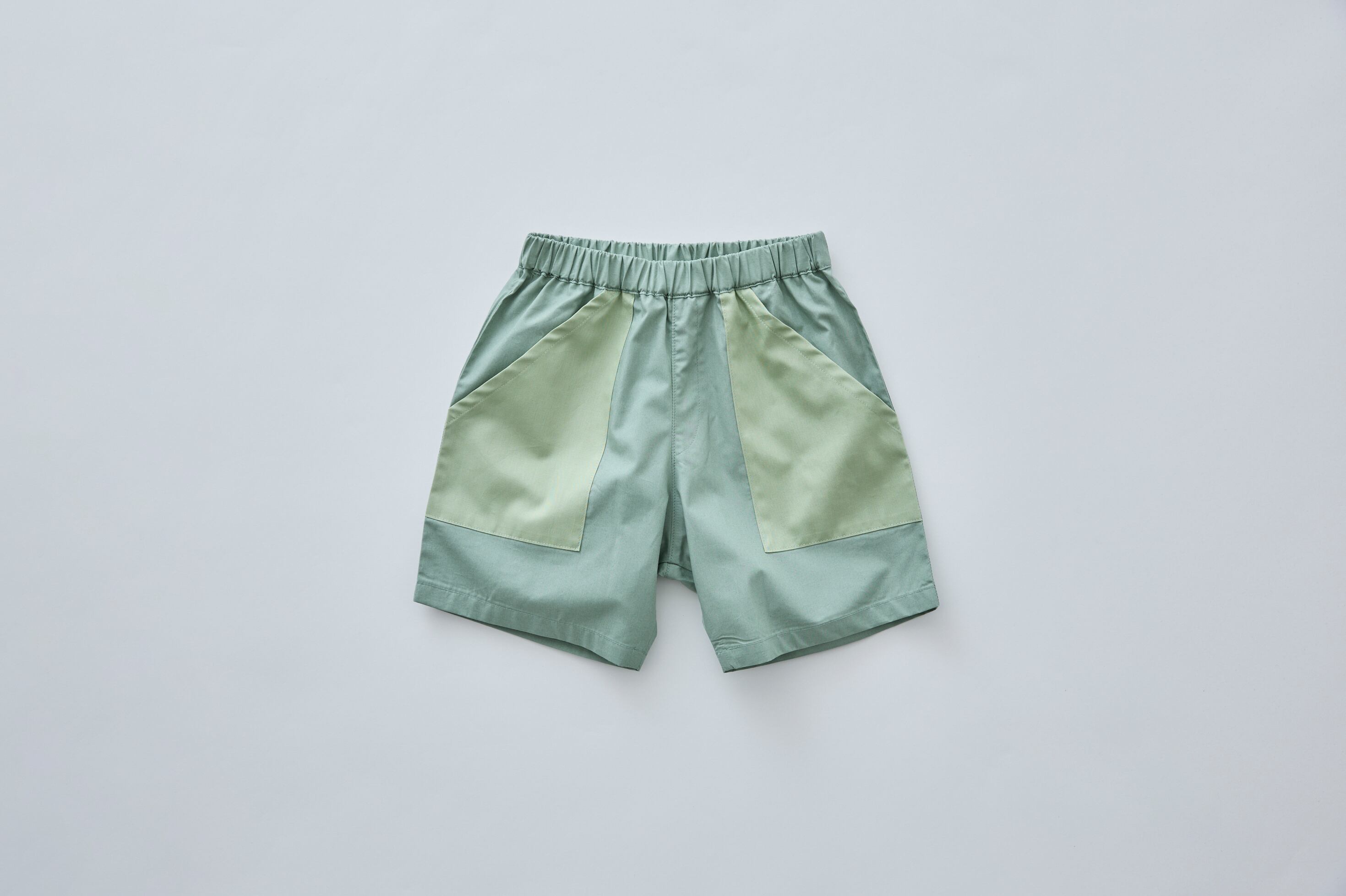コンパクトなショートパンツの大きなポケットは配色デザイン。ワンパクなキッズに何着でも欲しいアイテム。